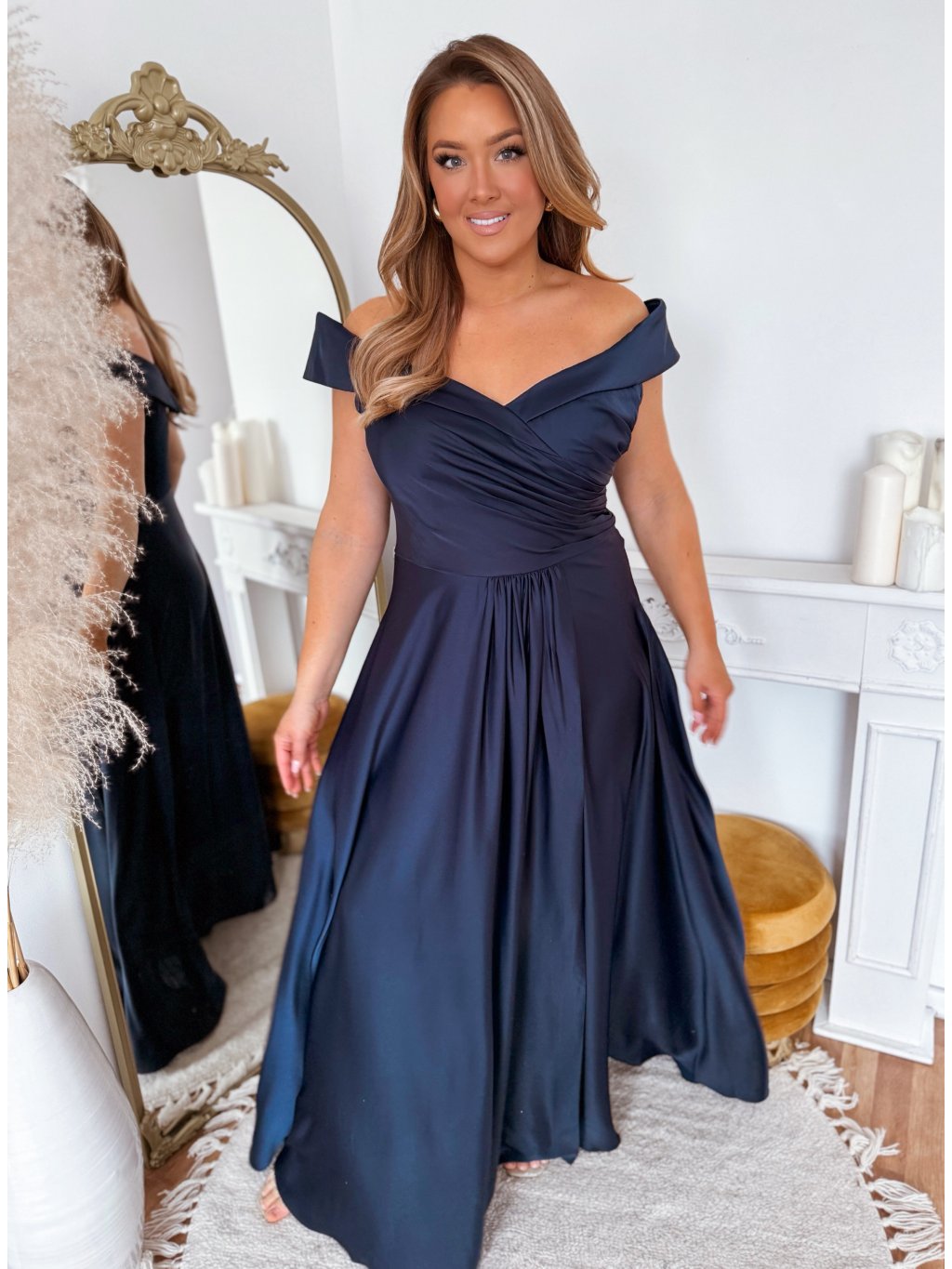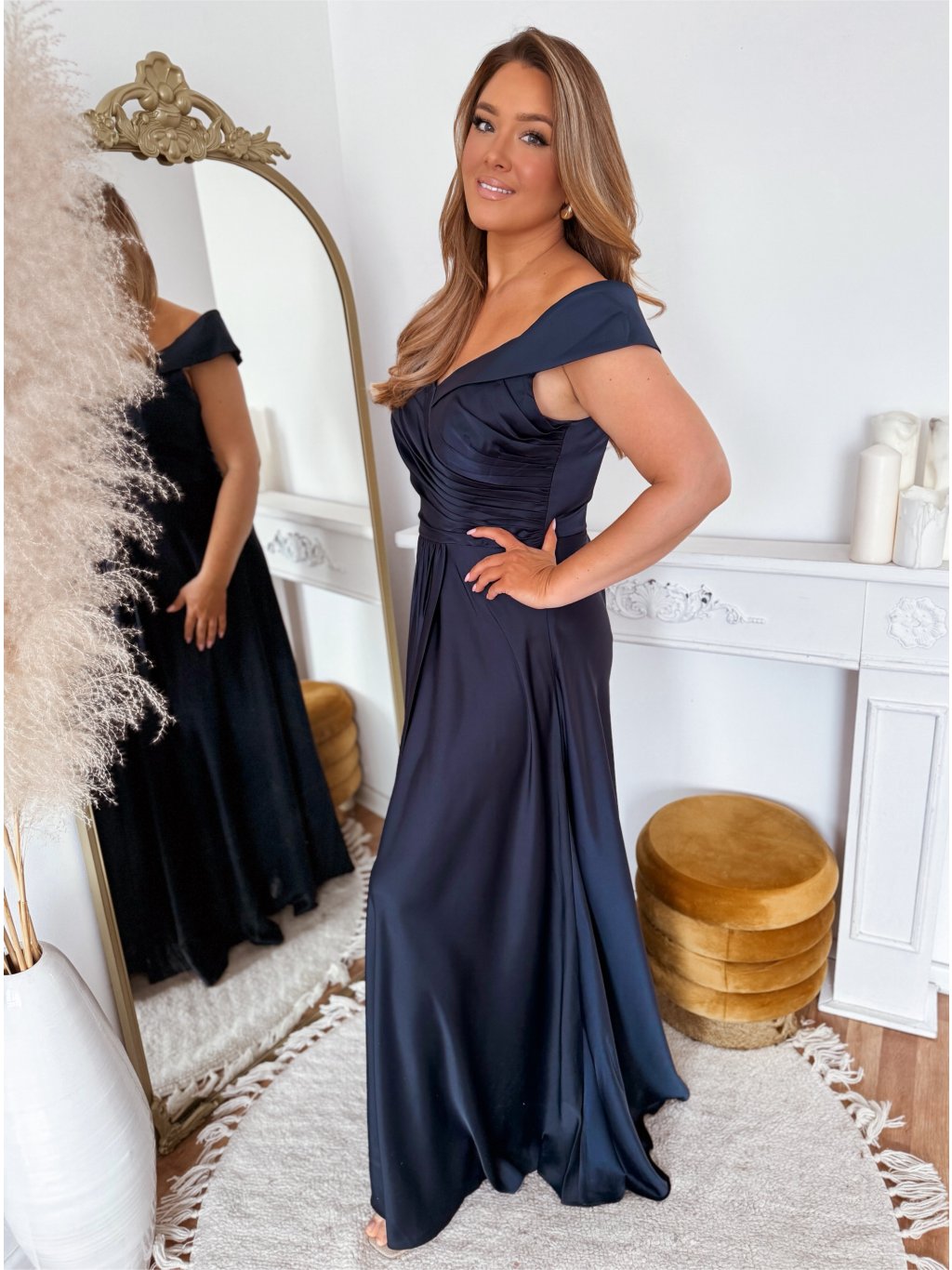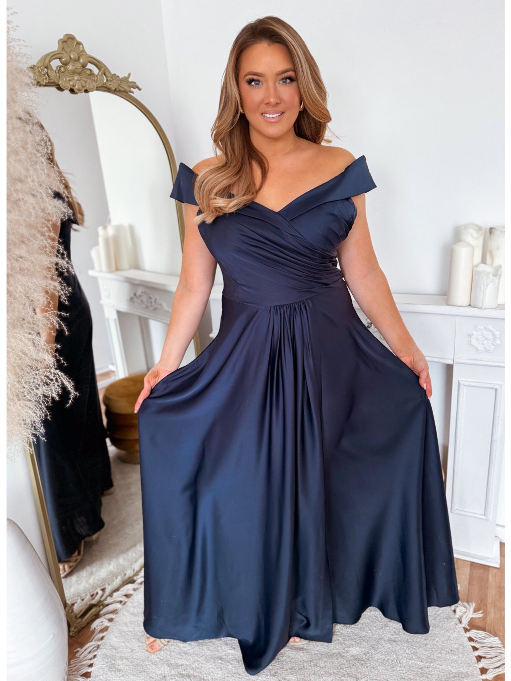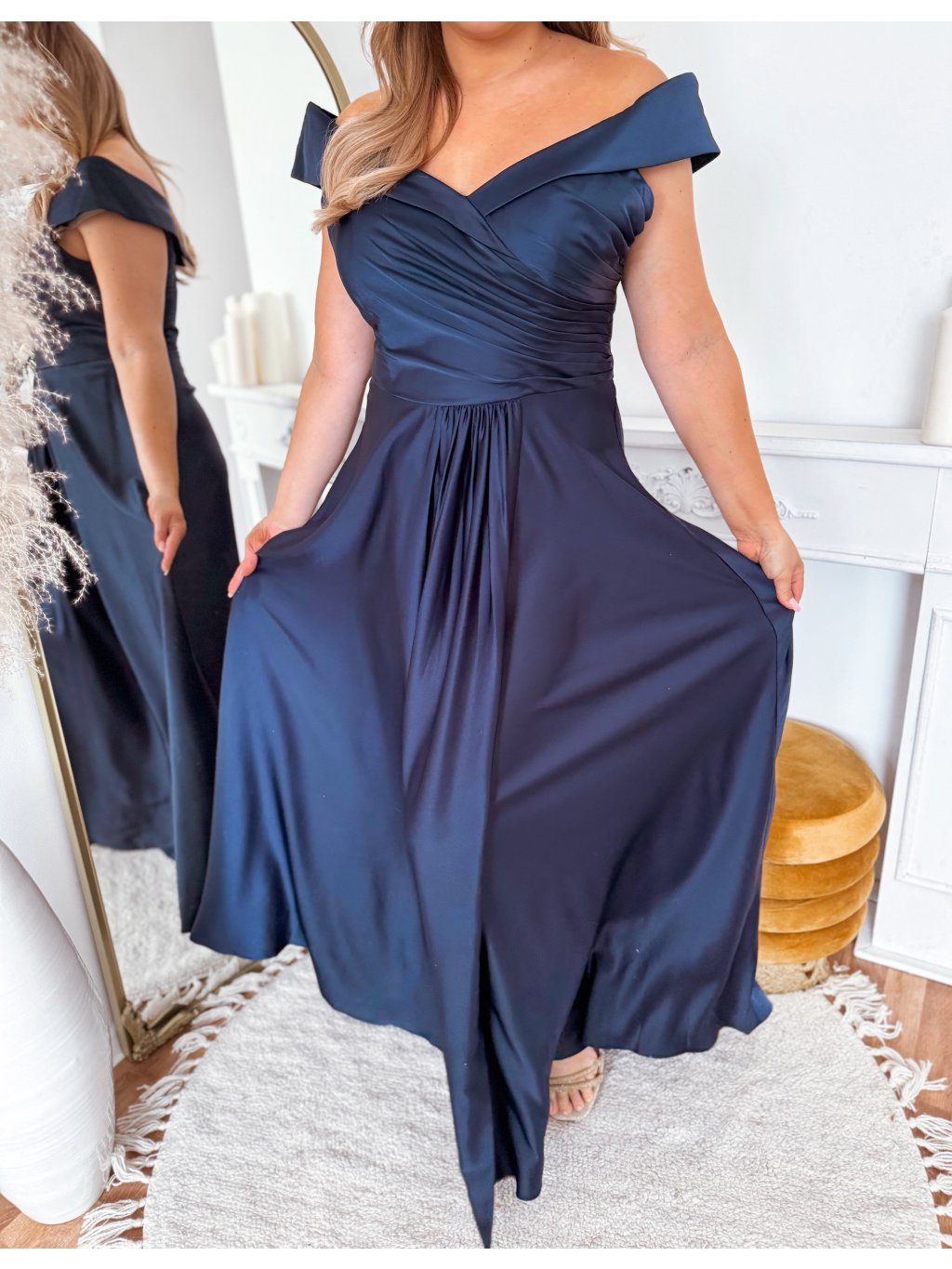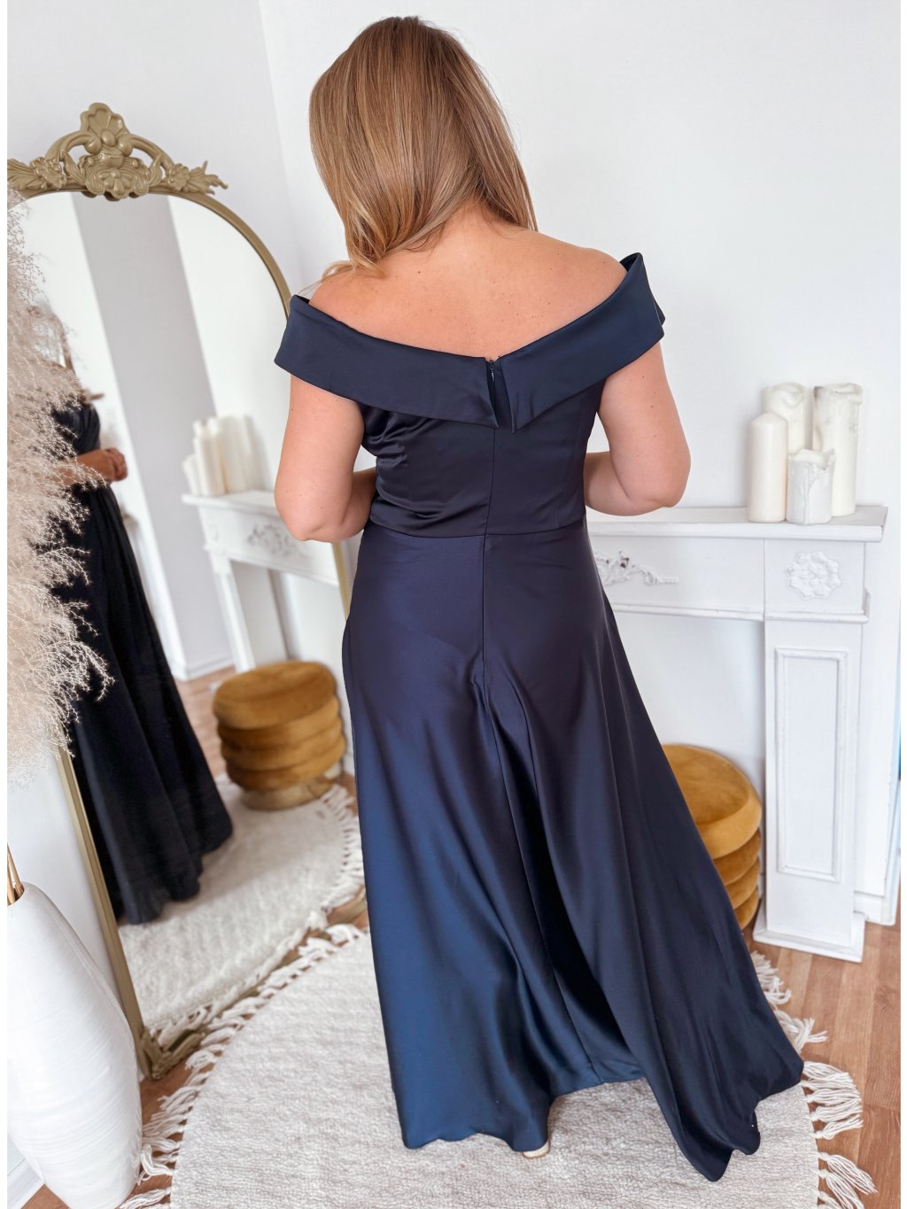 Elegáns estélyi ruha kivágott vállakkal - sötétkék