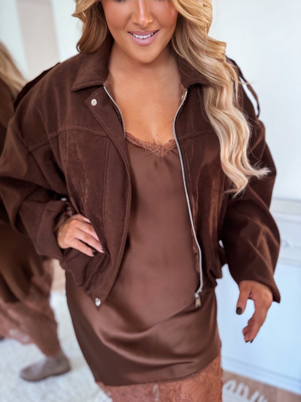 A vékonyabb dzseki kényelmes, lazább szabással rendelkezik, így univerzális, és nagyszerűen illeszkedik az L-től 3XL-es méretig. Ideális átmeneti időszakra, vagy kiegészítőként ruhákhoz, farmerokhoz vagy szoknyákhoz. A modell 168 cm magas és UNI méretet visel.