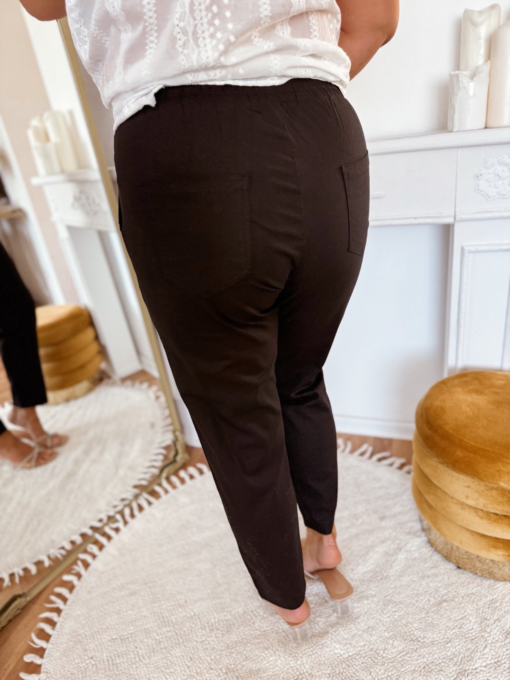 Fekete, gumis derekú nadrág