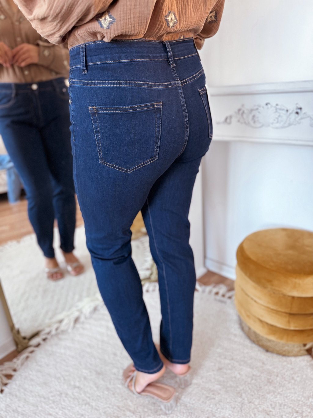 Sötétkék, szűk farmer
