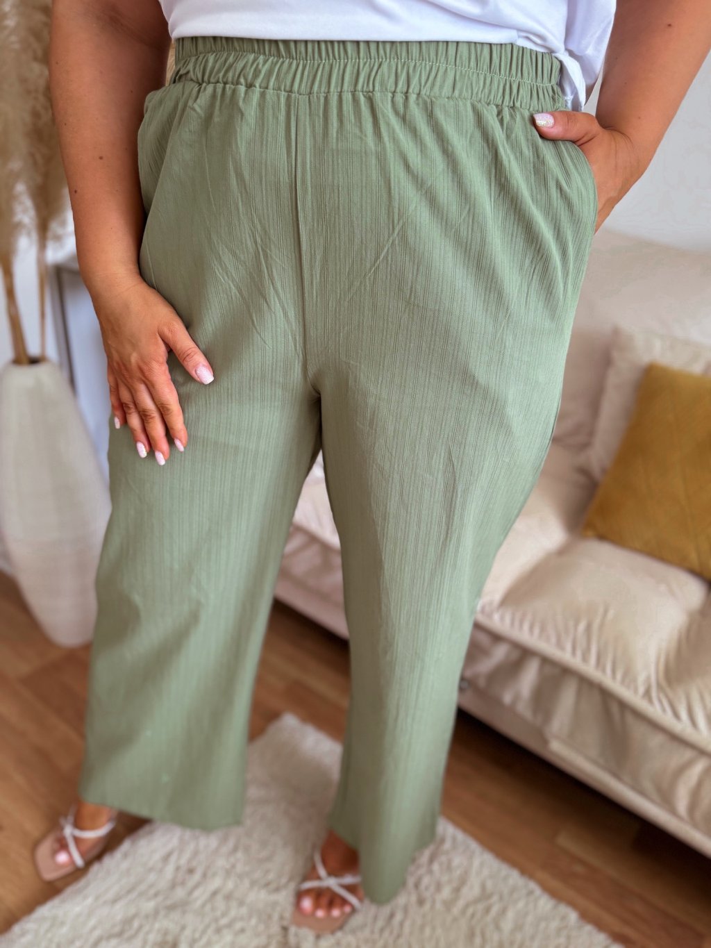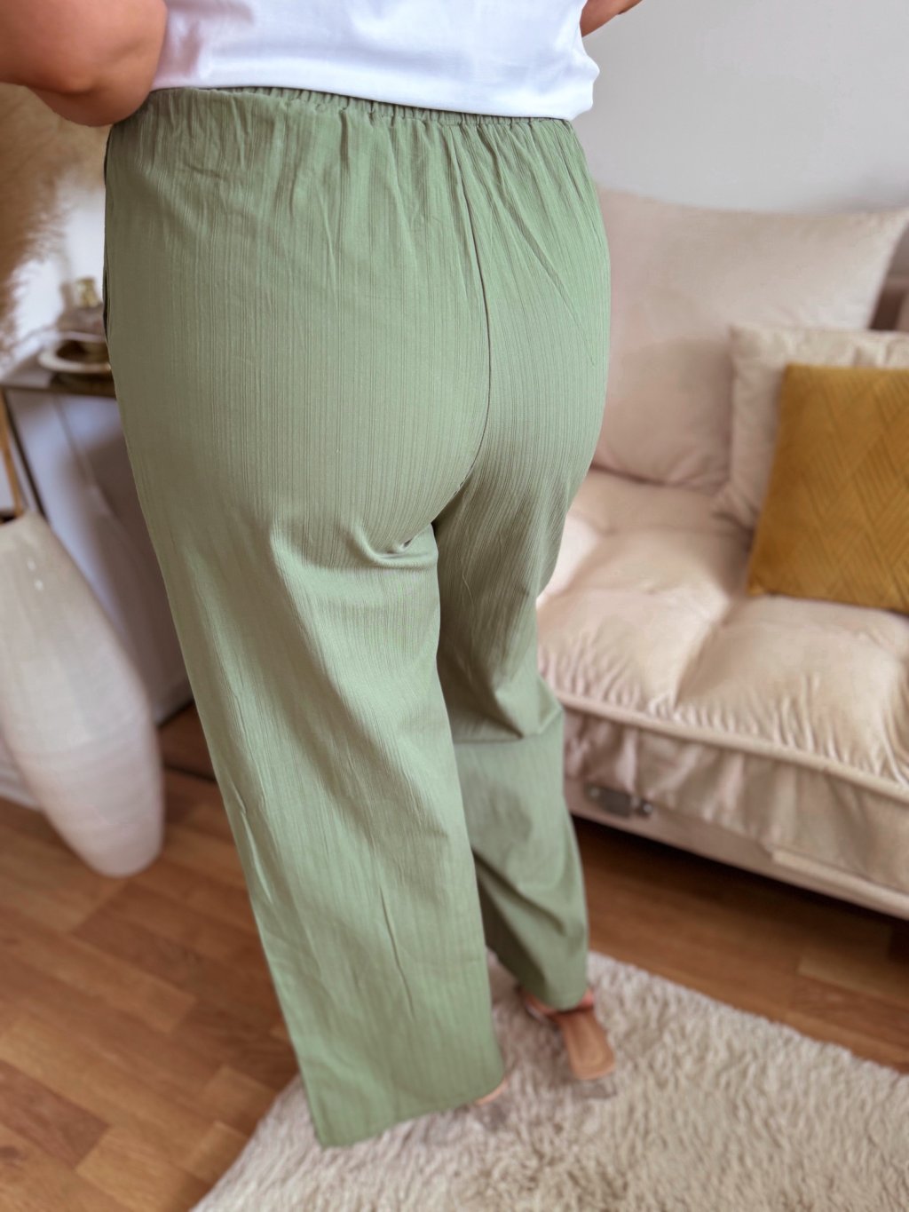 Nyári pamut nadrág finom mintával, a nadrág derekában gumírozás. A modell 168 cm magas és L/XL méretet visel.