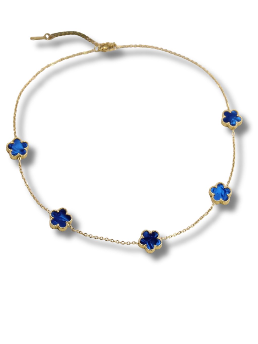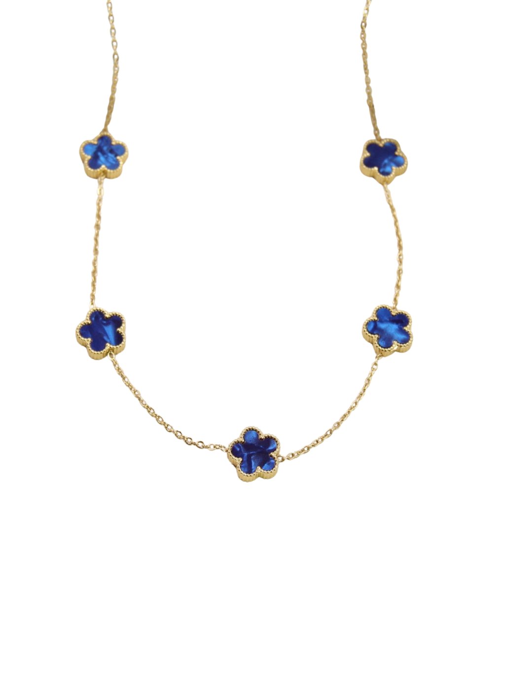 Női nyaklánc sebészeti acélból, kék virágokkal, finom és elegáns megjelenést kölcsönöz. Időtlen dizájnjának köszönhetően mindennapi viseletre, mind különleges alkalmakra alkalmas, és gyönyörűen kiegészít bármilyen ruhát.