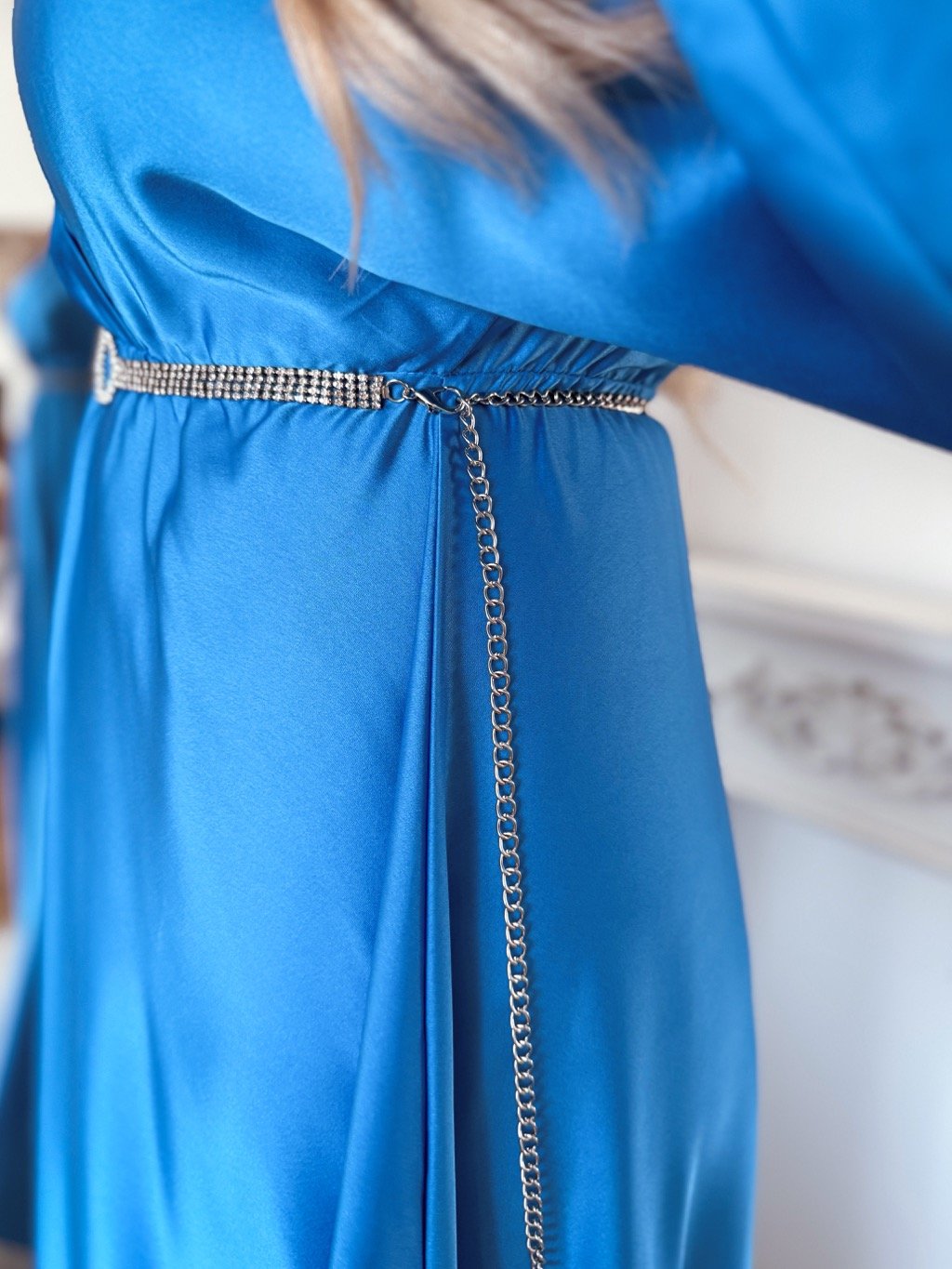 Elegáns, díszített és ezüst színű lánccal ellátott öv kölcsönöz luxus hangulatot a ruháknak. Az univerzális méretnek köszönhetően alkalmas társasági, esküvői és esti viselethez, és gyönyörűen kiemeli a derekat.