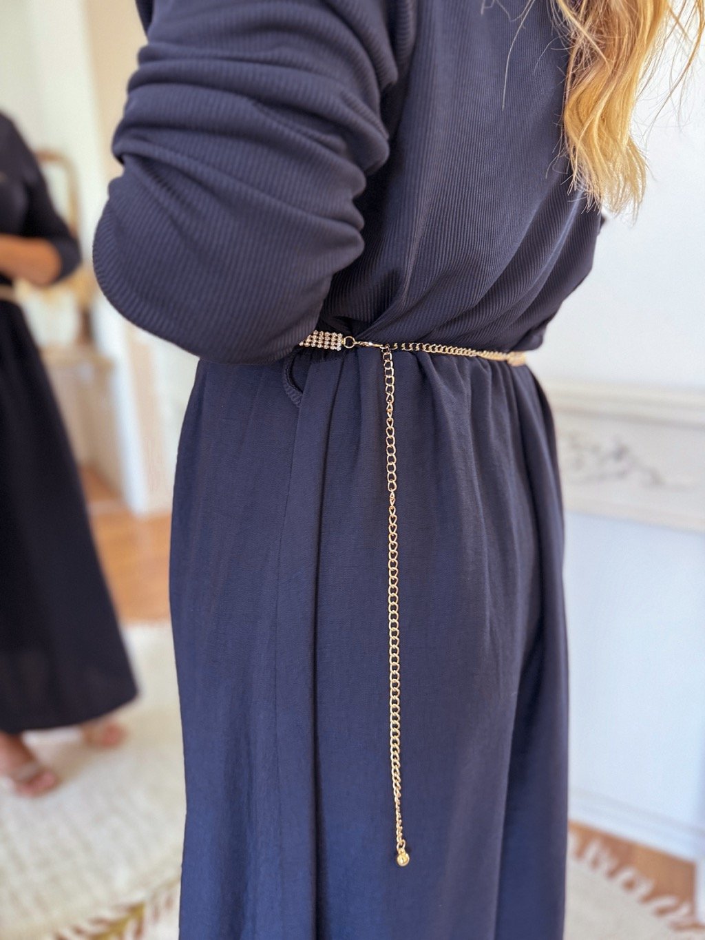 Elegáns, díszített, arany lánccal ellátott öv luxus hangulatot kölcsönöz a ruháknak. Az univerzális méretnek köszönhetően alkalmas társasági, esküvői és esti viselethez, és gyönyörűen kiemeli a derekat.