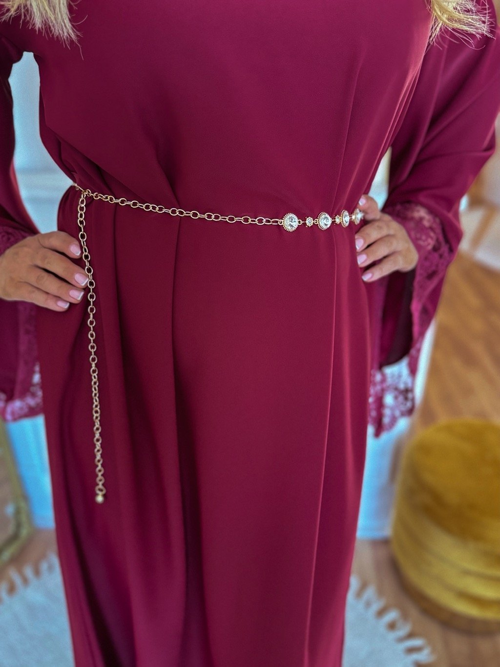 Elegáns, díszített, arany lánccal ellátott öv luxus hangulatot kölcsönöz a ruháknak. Az univerzális méretnek köszönhetően alkalmas társasági, esküvői és esti viselethez, és gyönyörűen kiemeli a derekat.