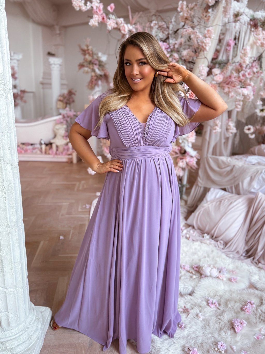 Esküvői ruha csipkével - levendula