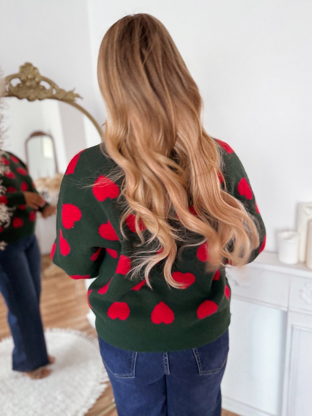 A női pulóver rugalmas és követi a test vonalát. A pulóver L-2XL méretekre illik. A modell 168 cm magas és Uni méretet visel.