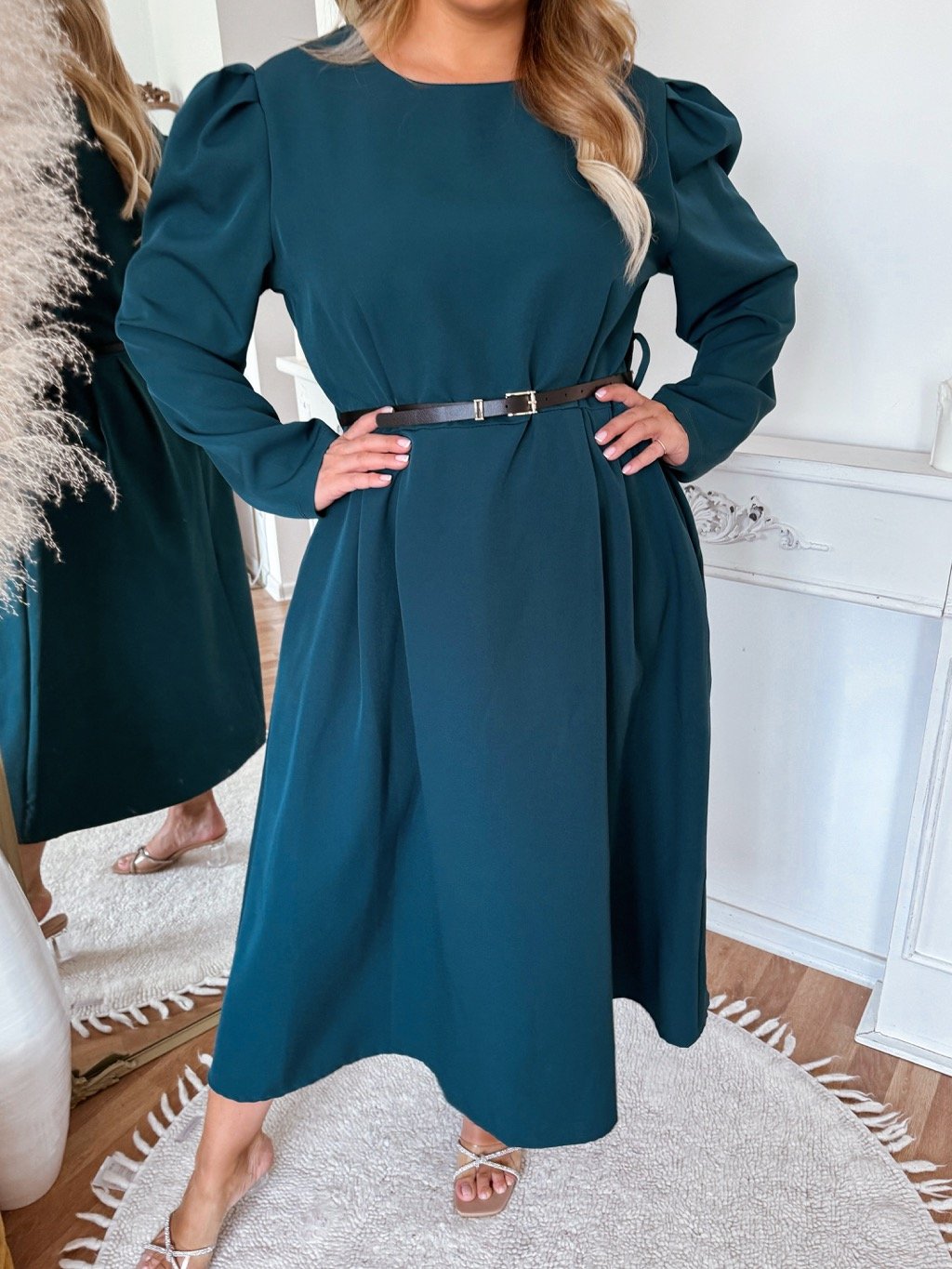 A-vonalú ruha hosszú ujjakkal - smaragd