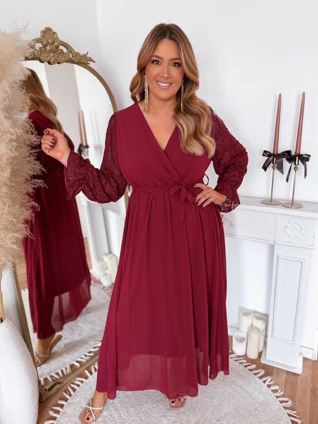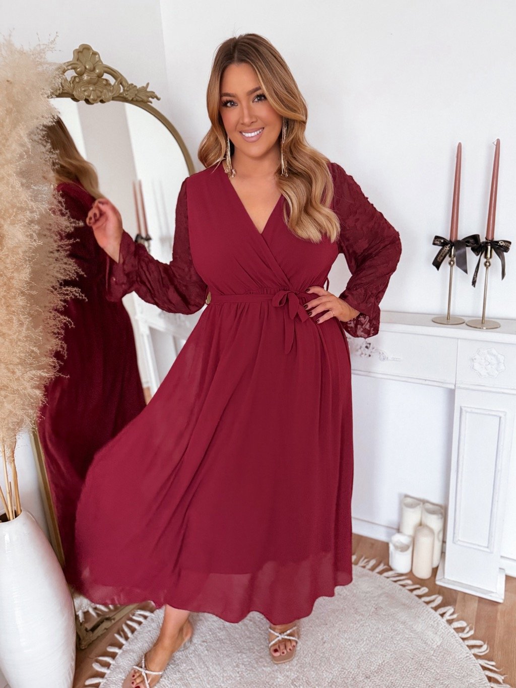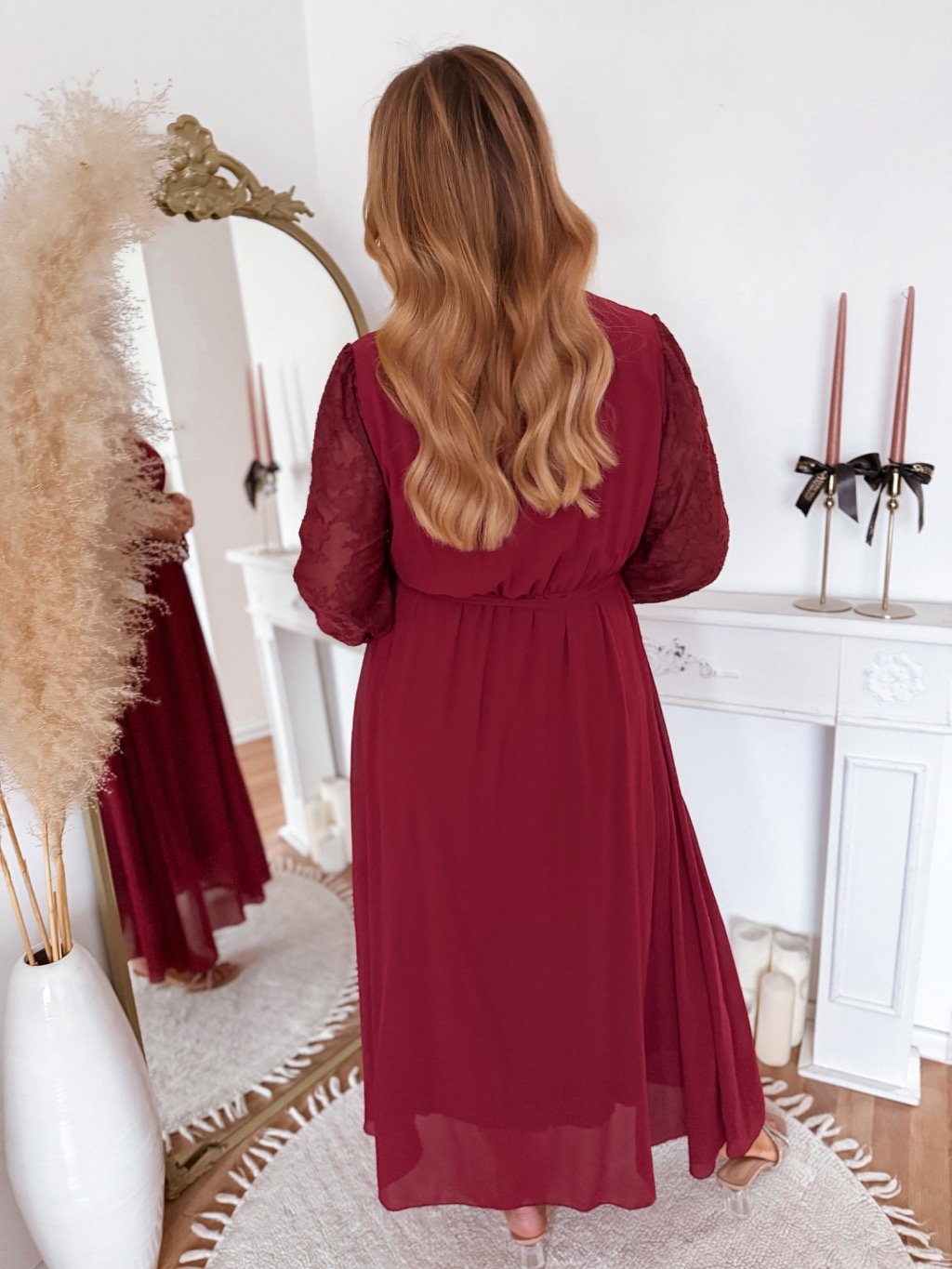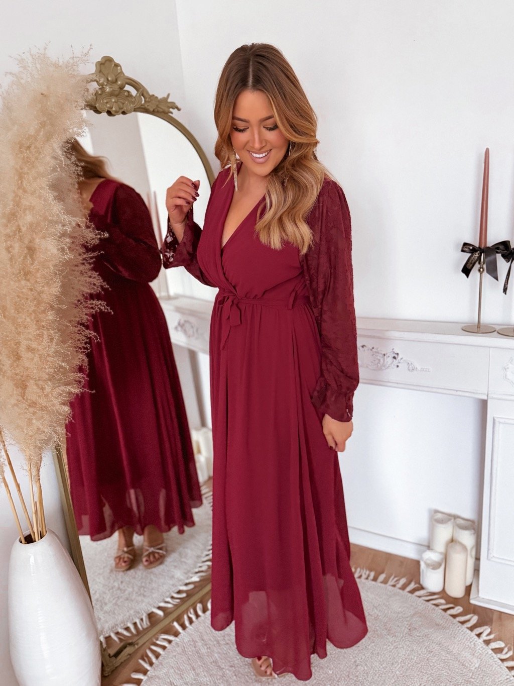 Bordó ruha virágmintás ujjakkal