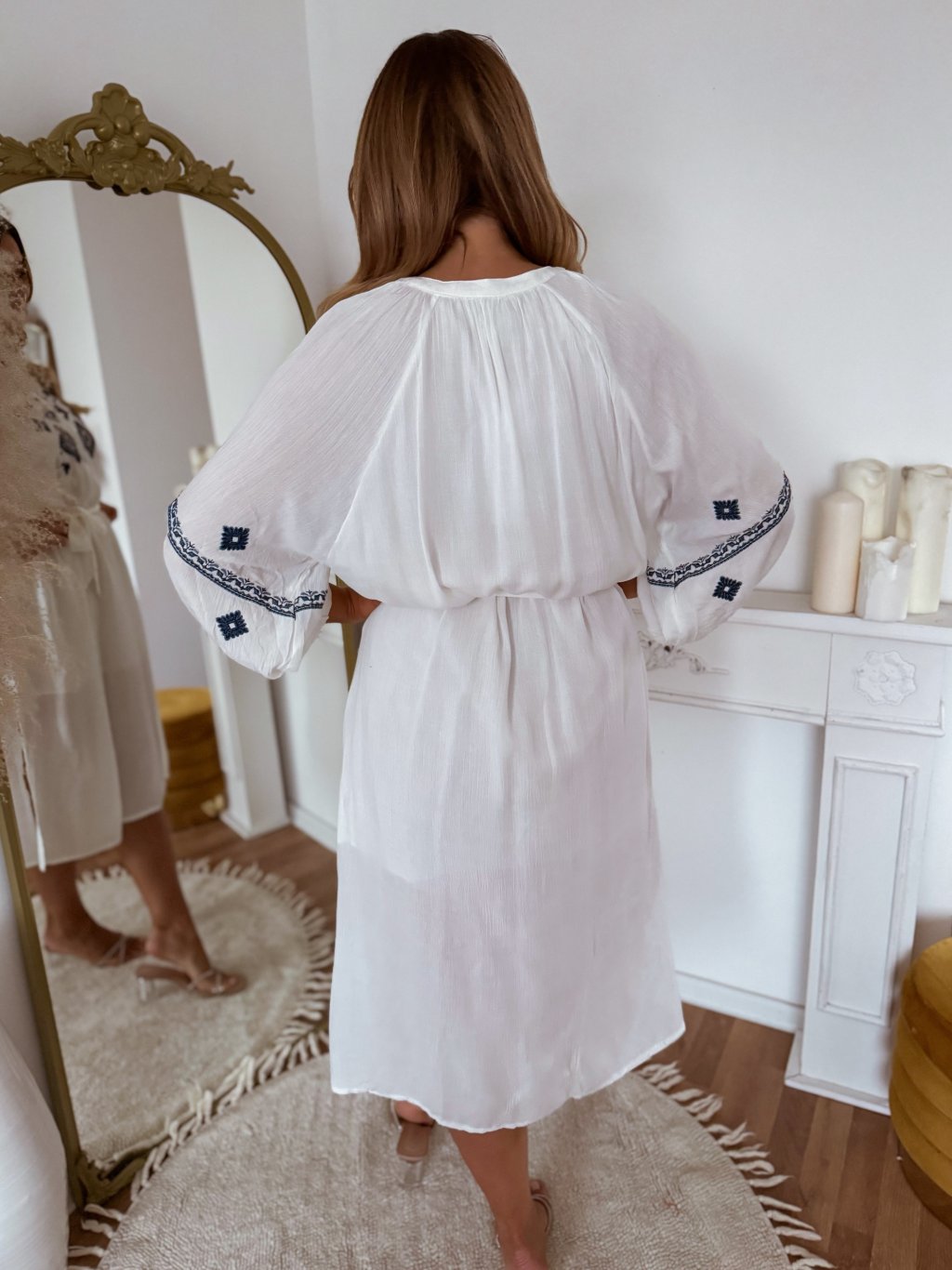 Fehér pamut ruha hímzéssel