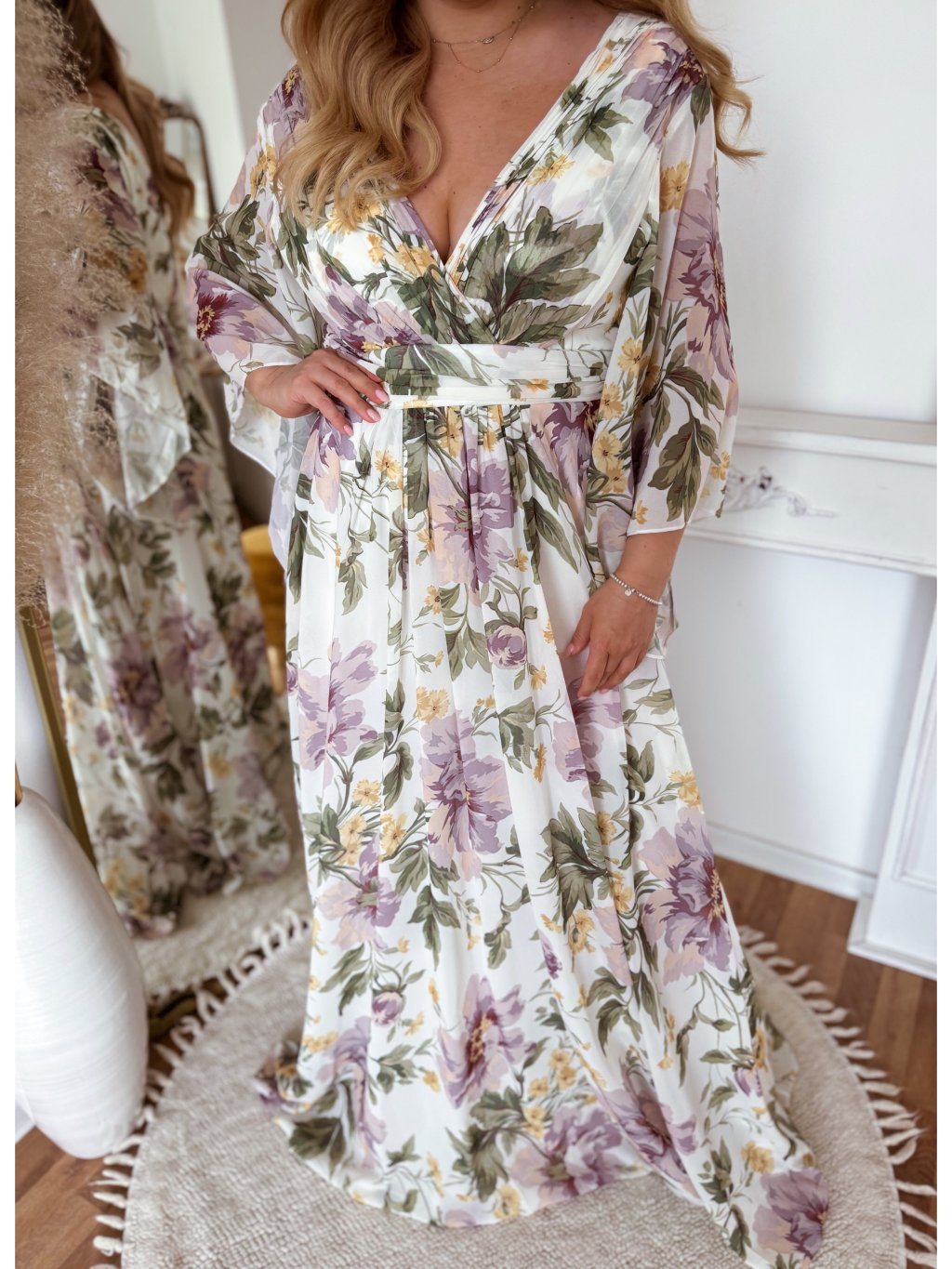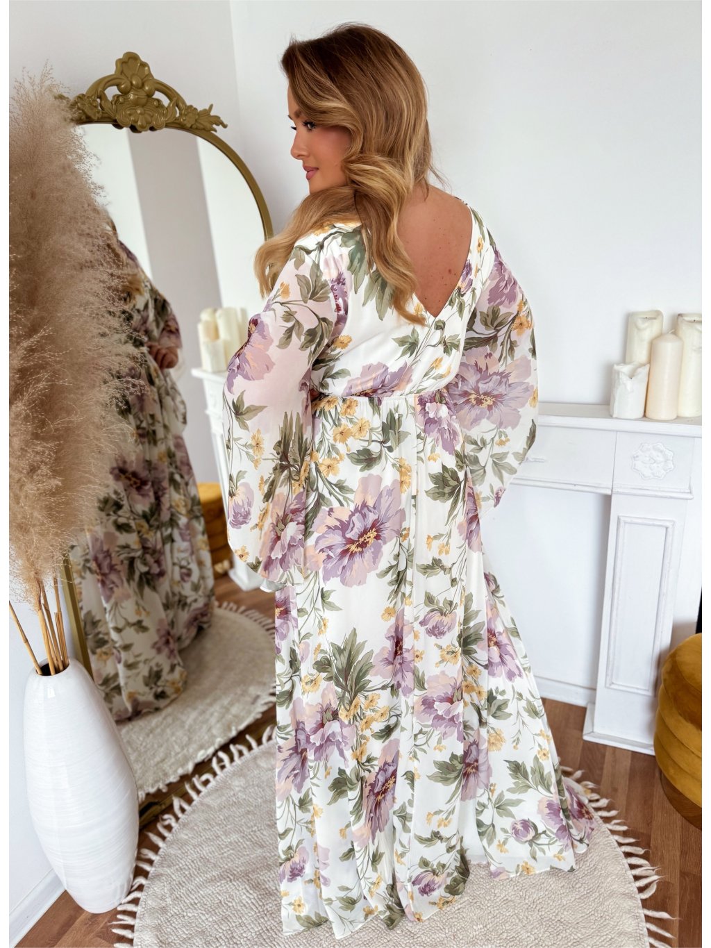 Hosszú, elegáns maxiruhák mély kivágással és drámai ujjal. A moletteknek szánt alkalmi ruha hátul bevarrt gumírozással rendelkezik a derékrészen. A szoknya teljesen bő. A szoknya teljesen bő. A modell 168 cm magas és XL (42) méretet visel.
