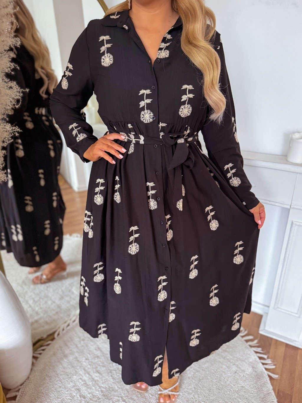 Fekete virágmintás ingruha