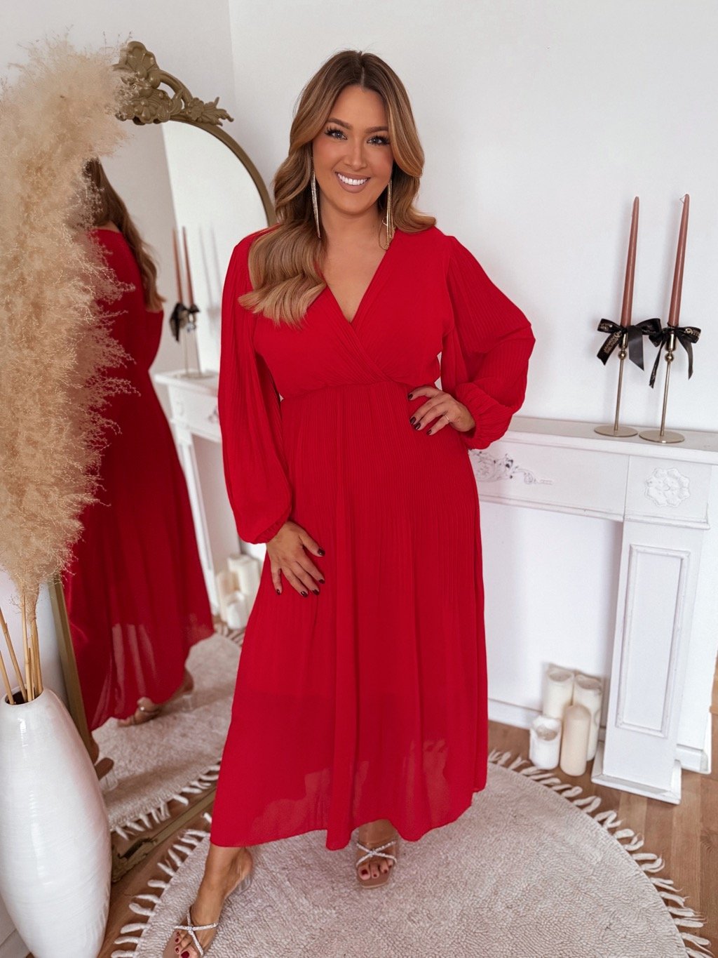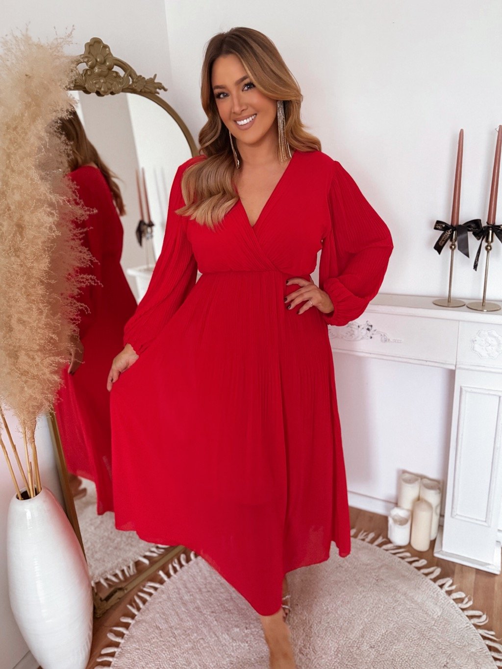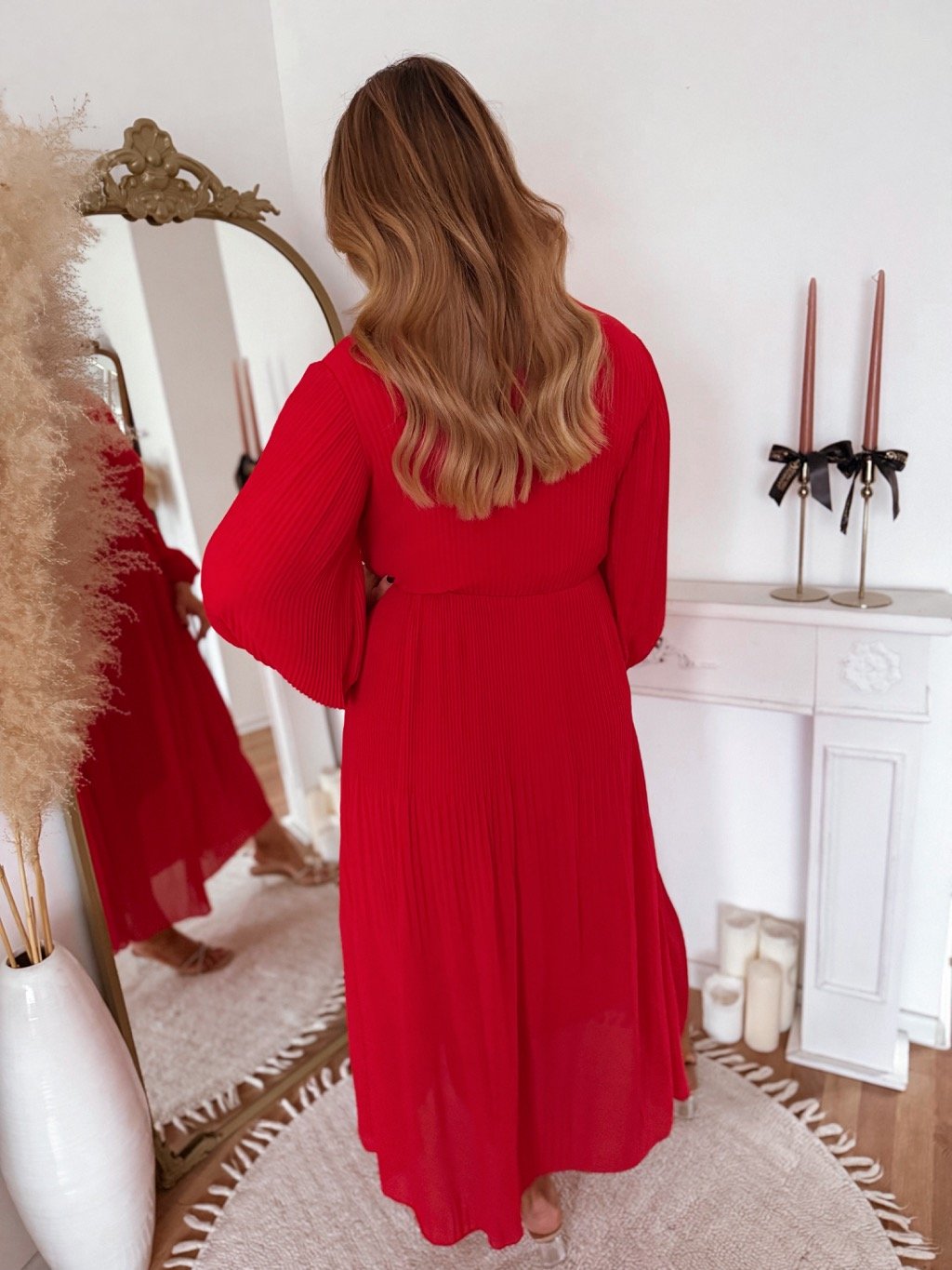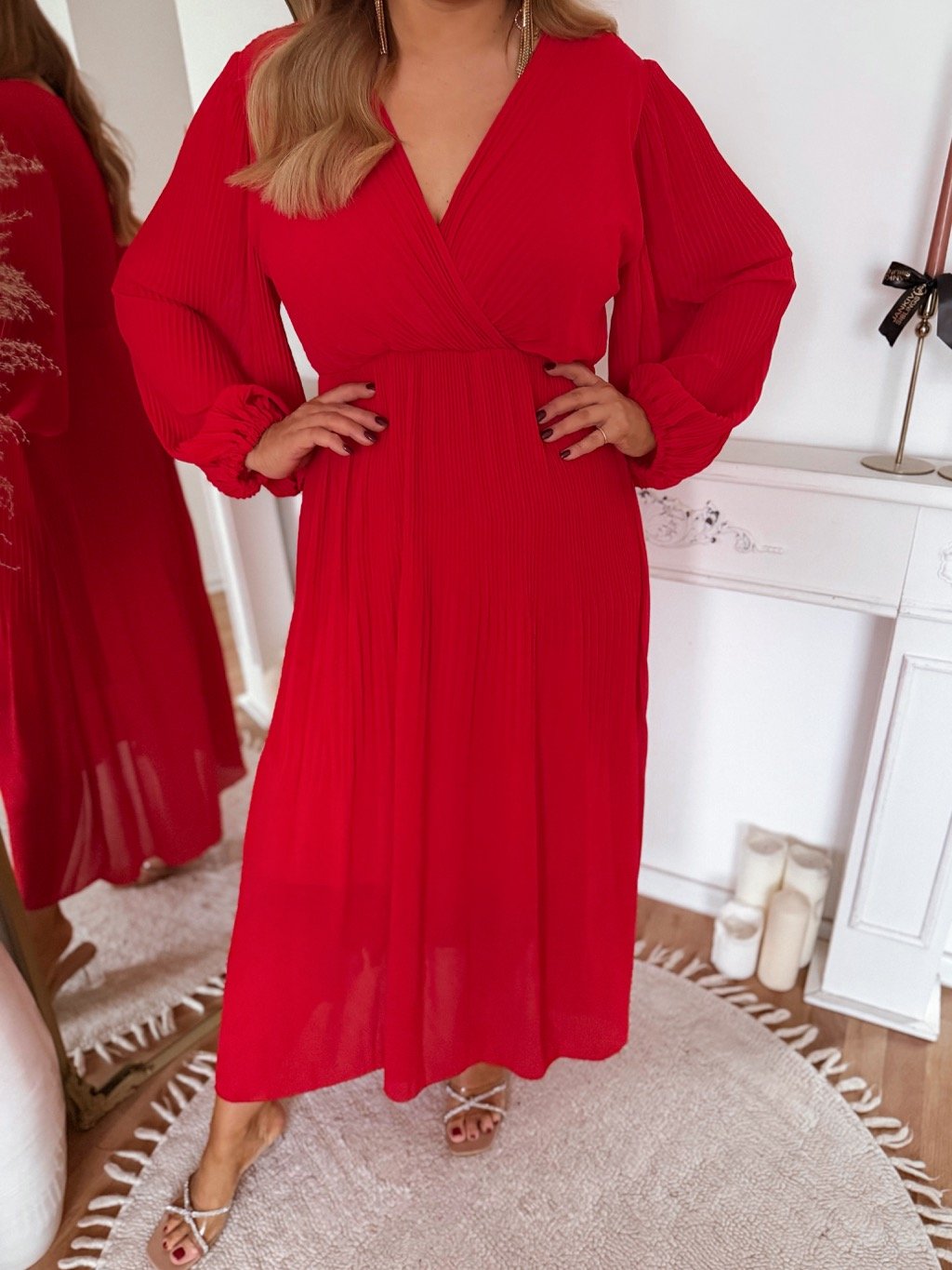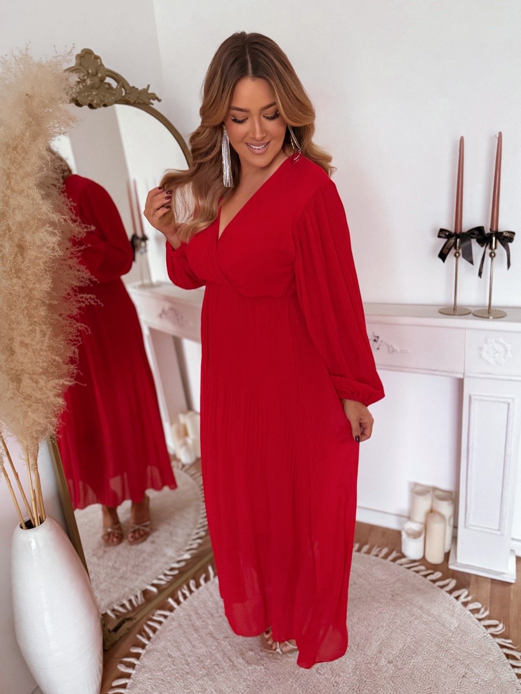 Hosszú, piros pliszírozott ruha