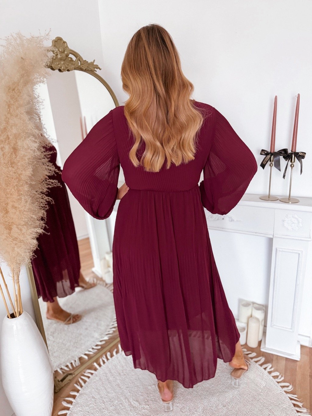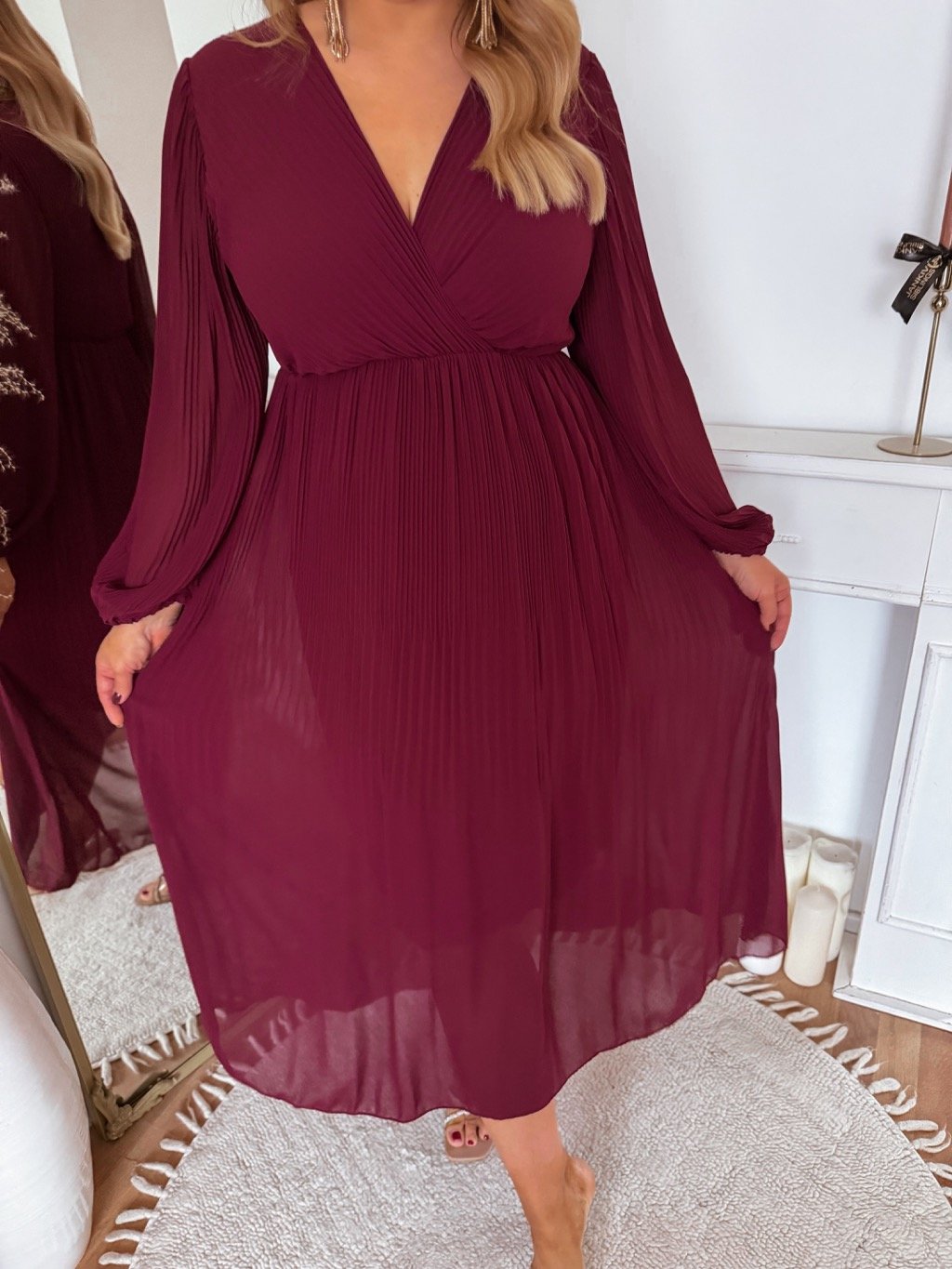 Hosszú bordó pliszírozott ruha
