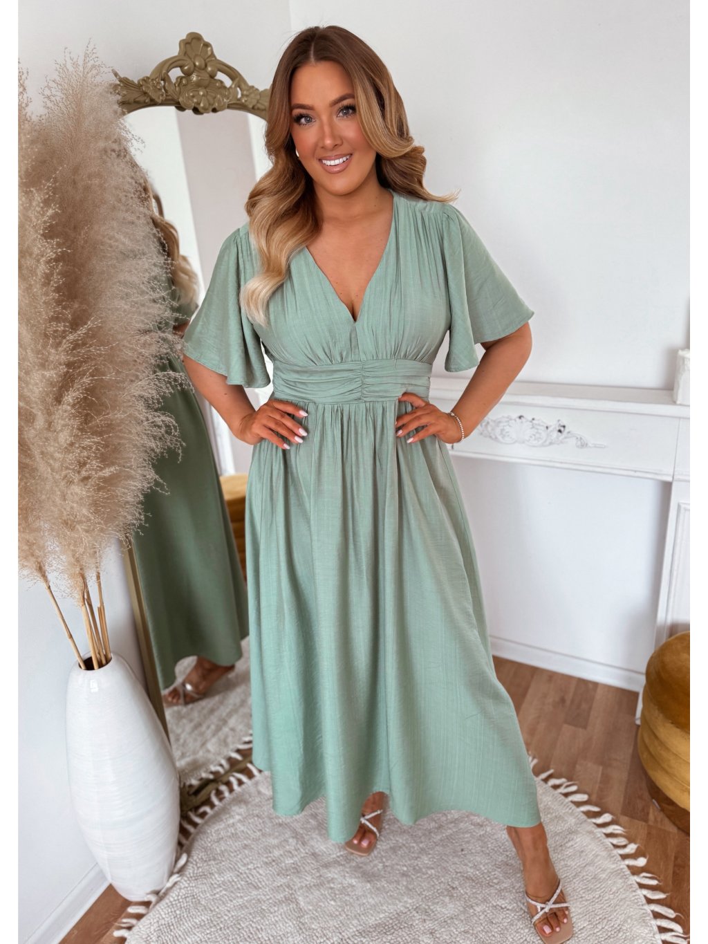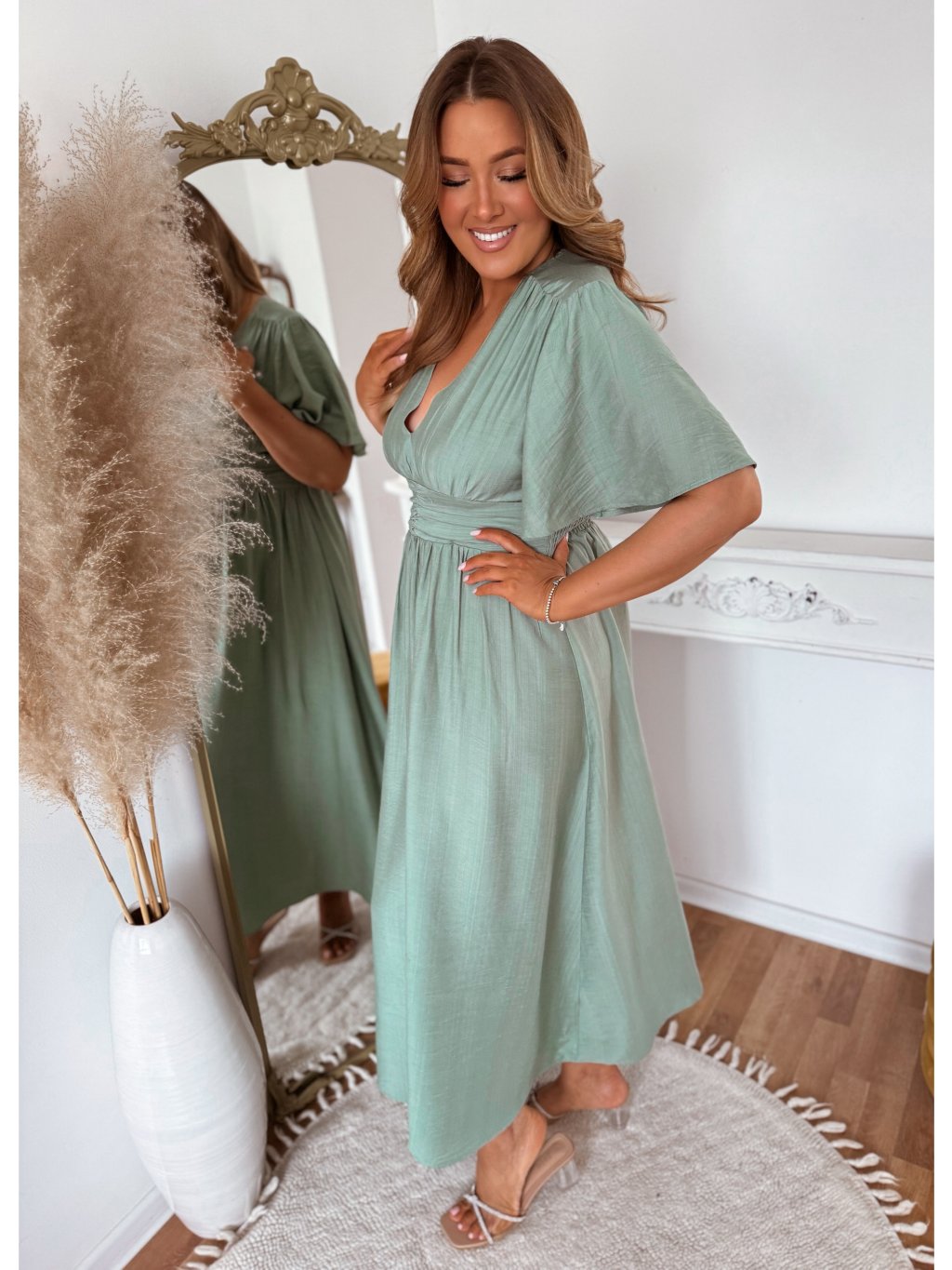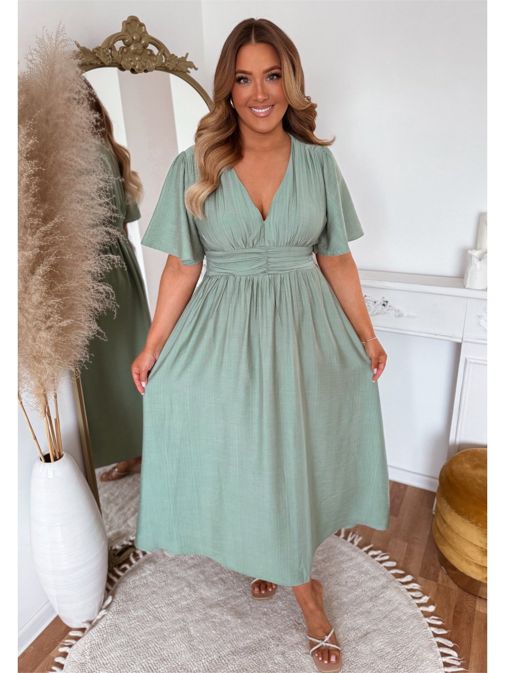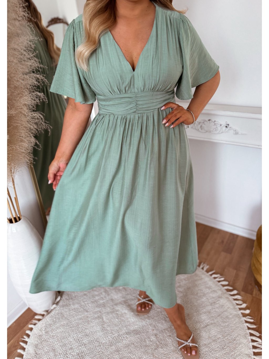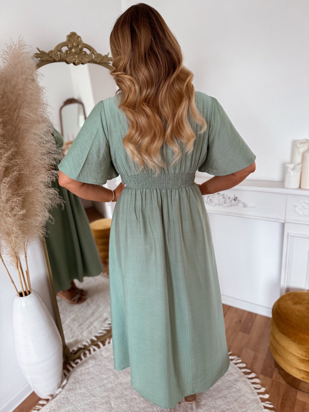 Hosszú plus size ruha rövid ujjal, a ruha derekán gumírozott, a ruha szoknyája teljesen bő szabású. A model mér 168 cm, és XL-es méretet visel.