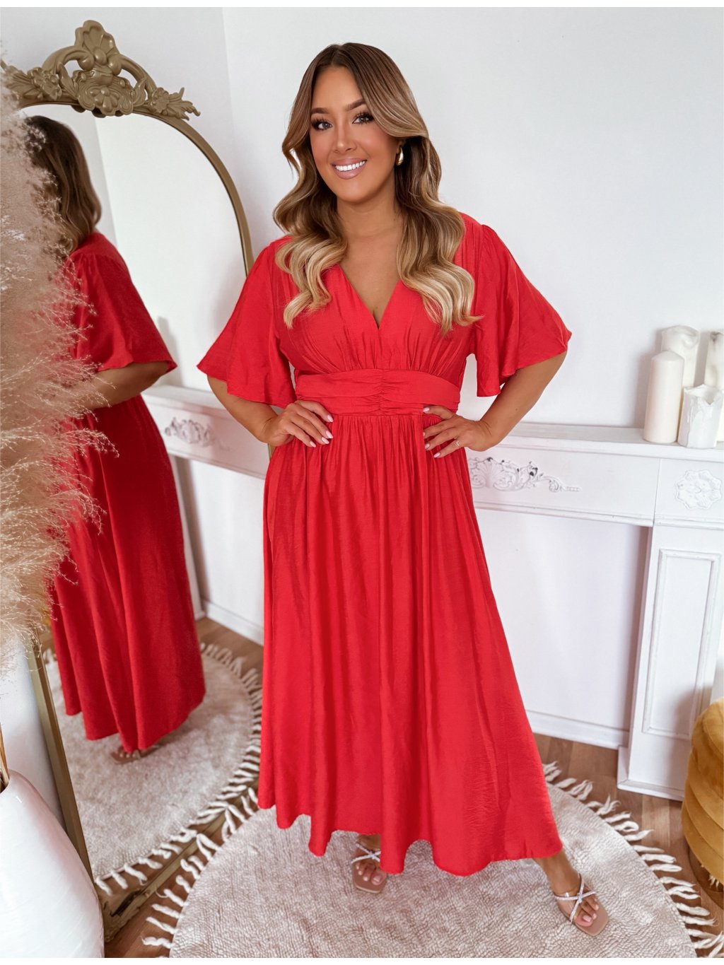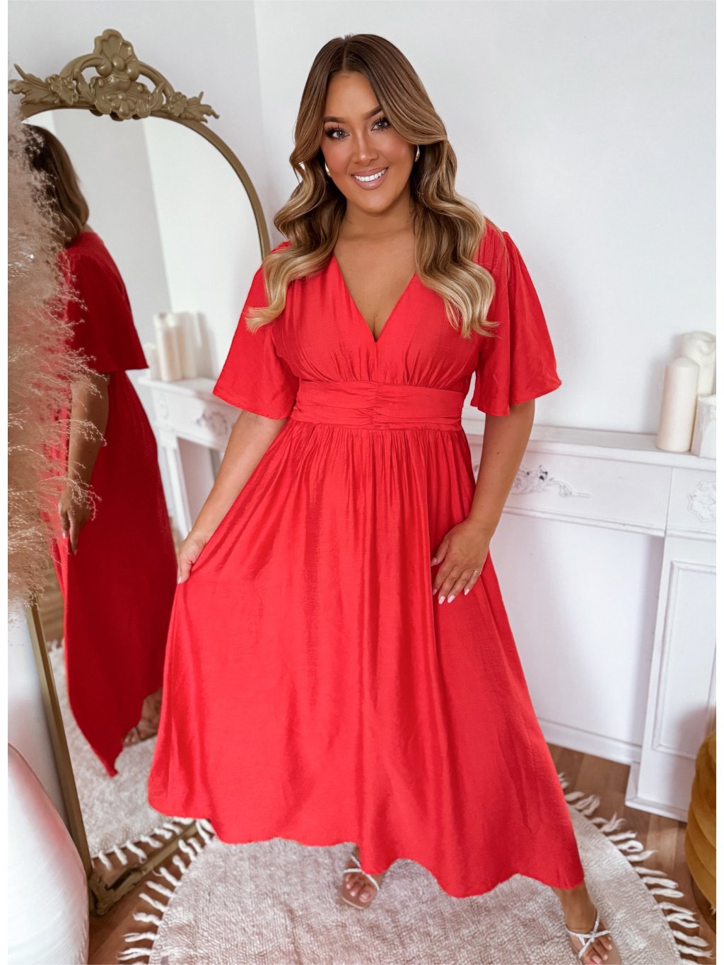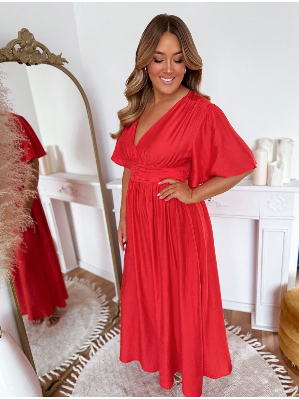 Hosszú plus size ruha rövid ujjal, a ruha derekán gumírozott, a ruha szoknyája teljesen bő szabású. A model mér 168 cm, és XL-es méretet visel.