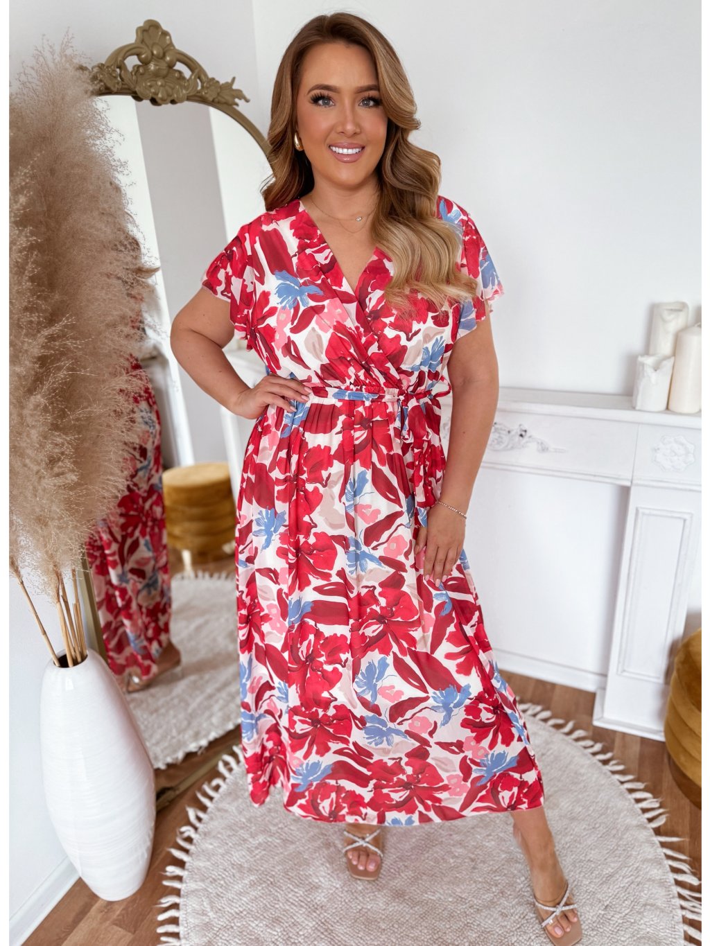 Hosszú ruhák piros virágokkal