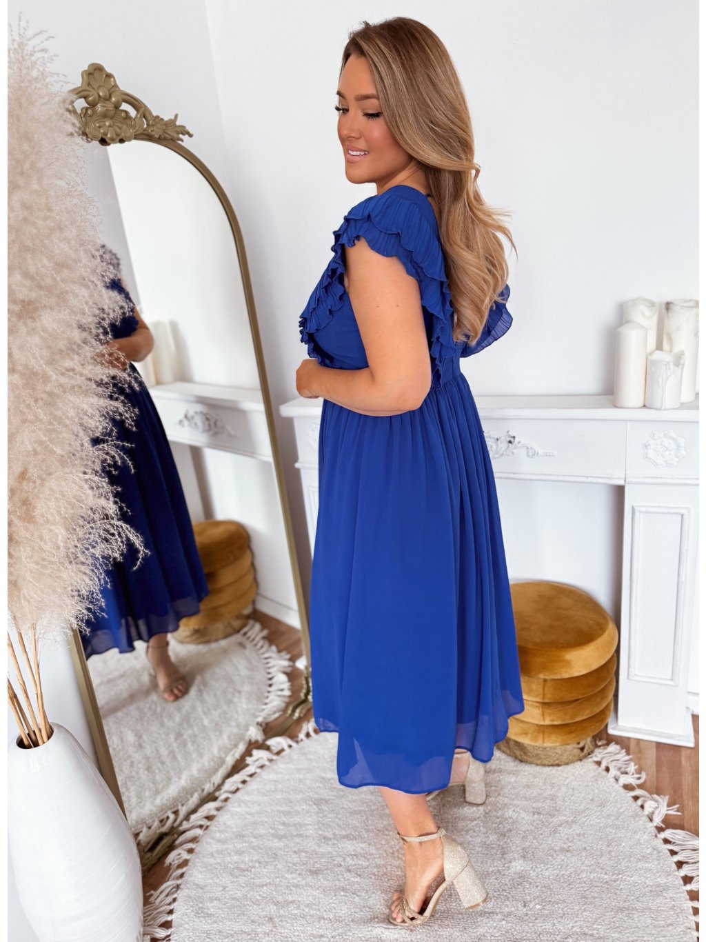Elegáns ruha mély kivágással, cipzárral a hátán és bő szoknyával. A model mér 168 cm, és XL-es méretet visel.