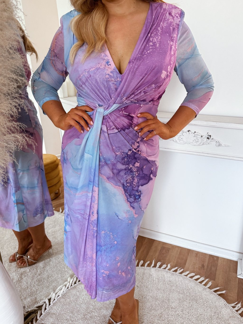 Lila-kék márvány mintás midi ruha