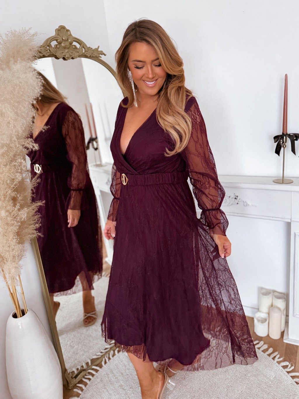 Elegáns barna midi csipkeruha ART251192H/2271/UNI