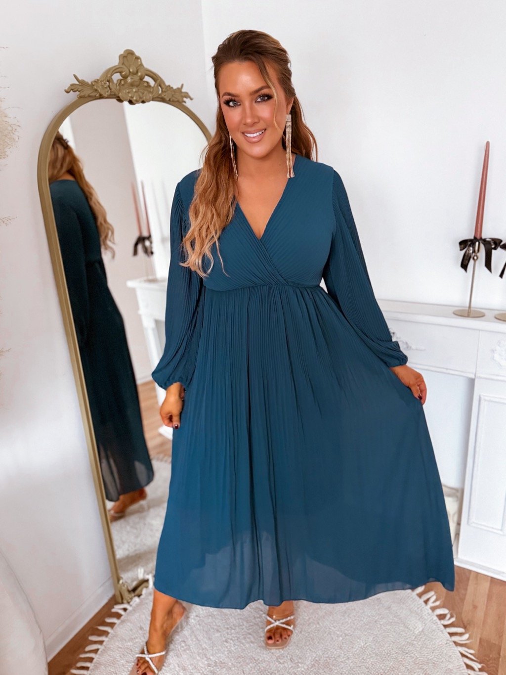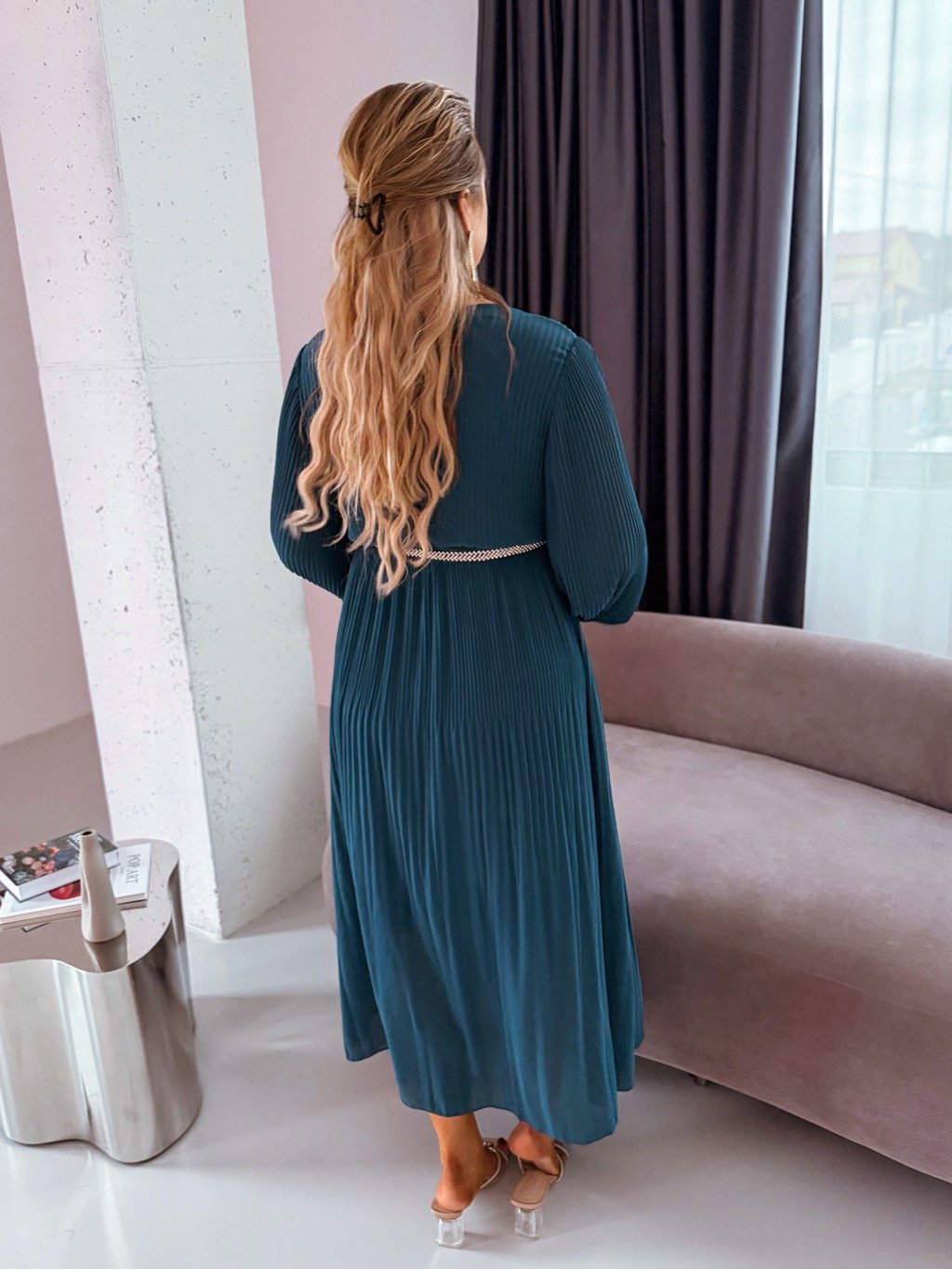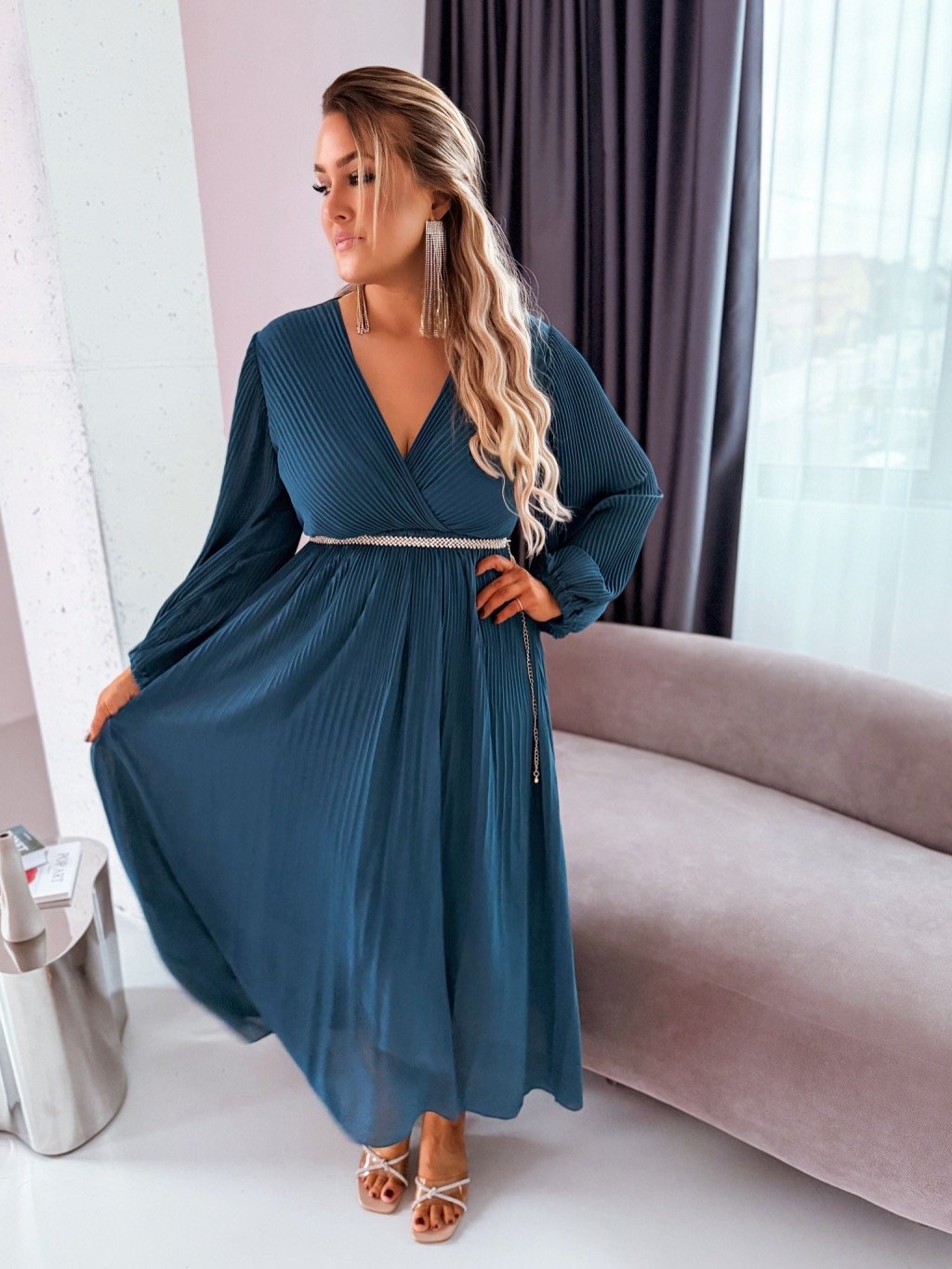 Petrolkék hosszú pliszírozott ruha