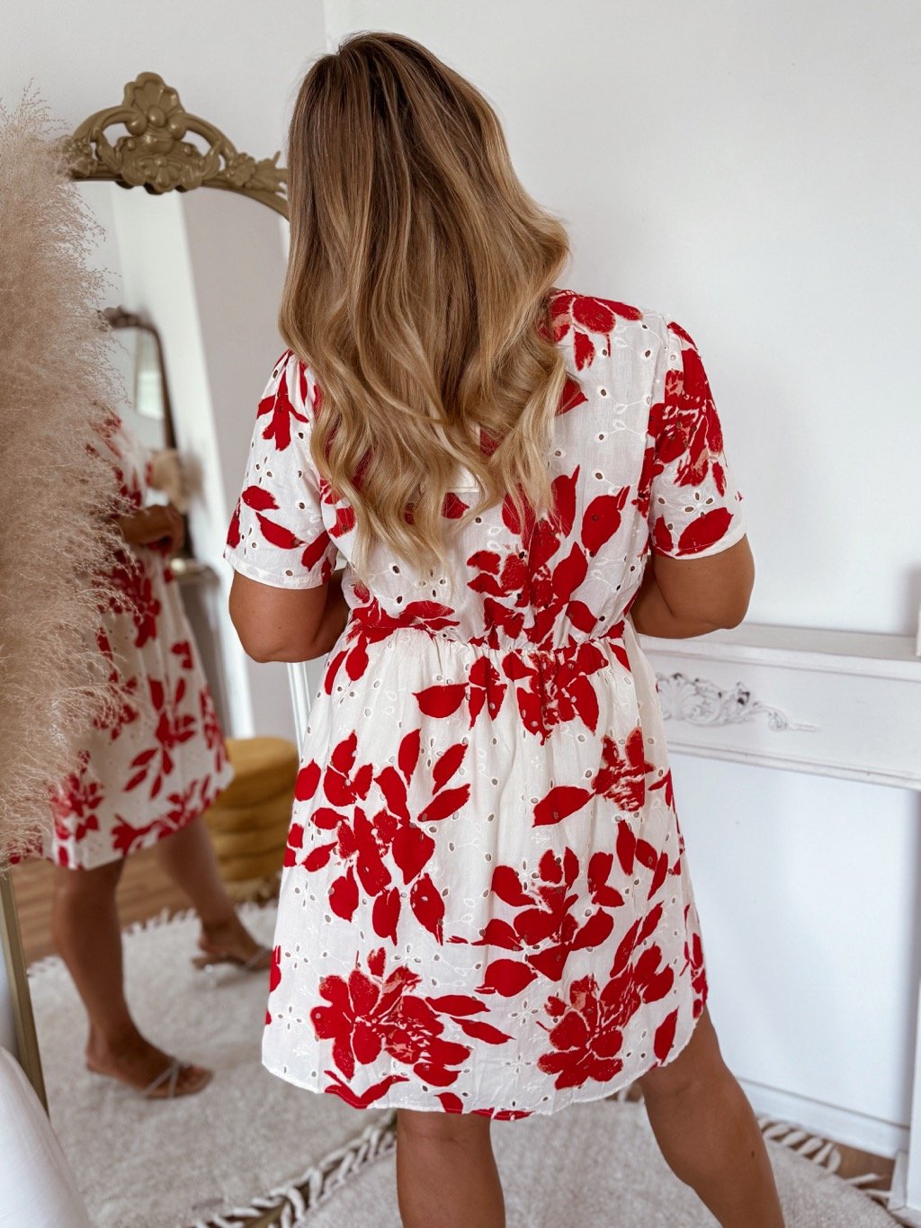 Rövid ruhák piros virágokkal