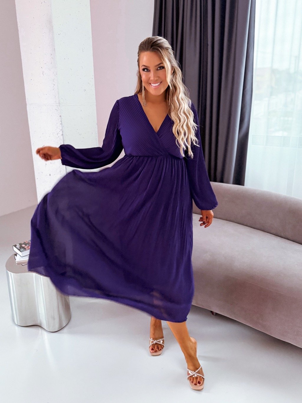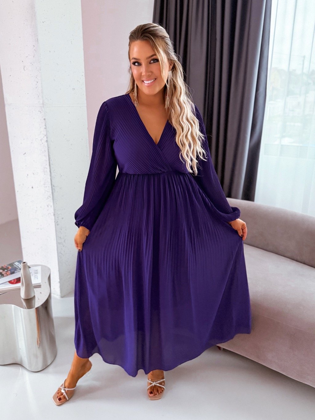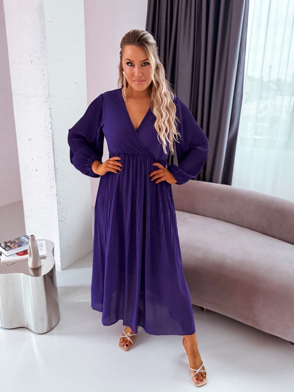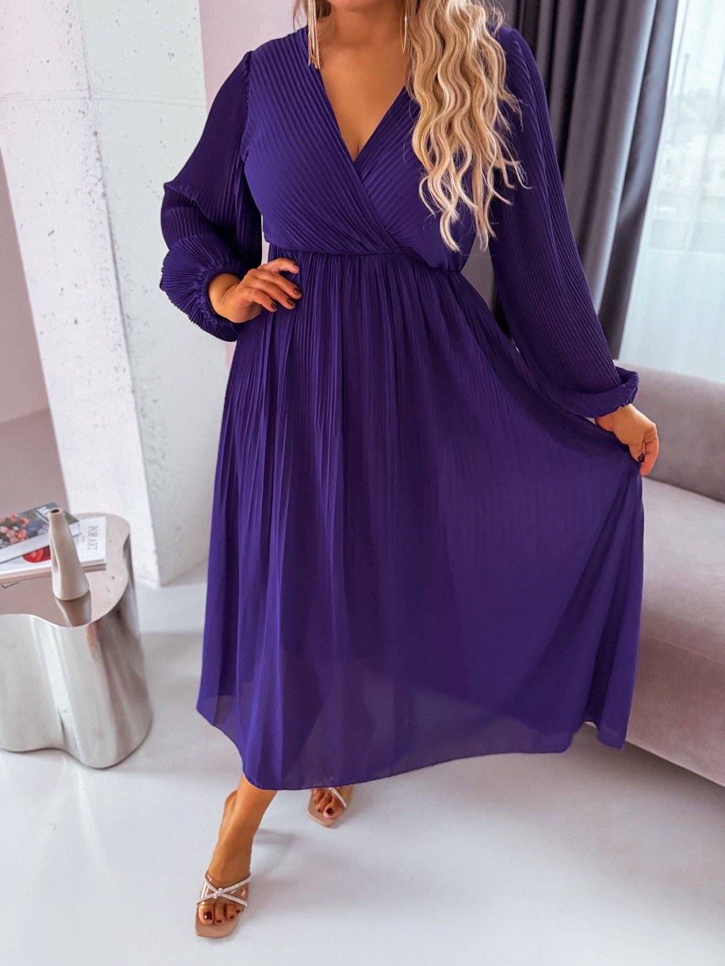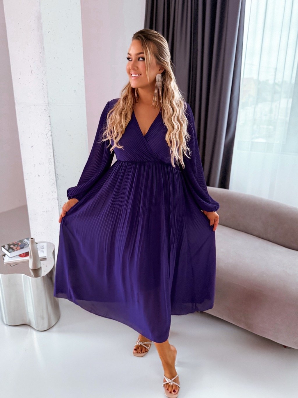 Sötétlila hosszú pliszírozott ruha