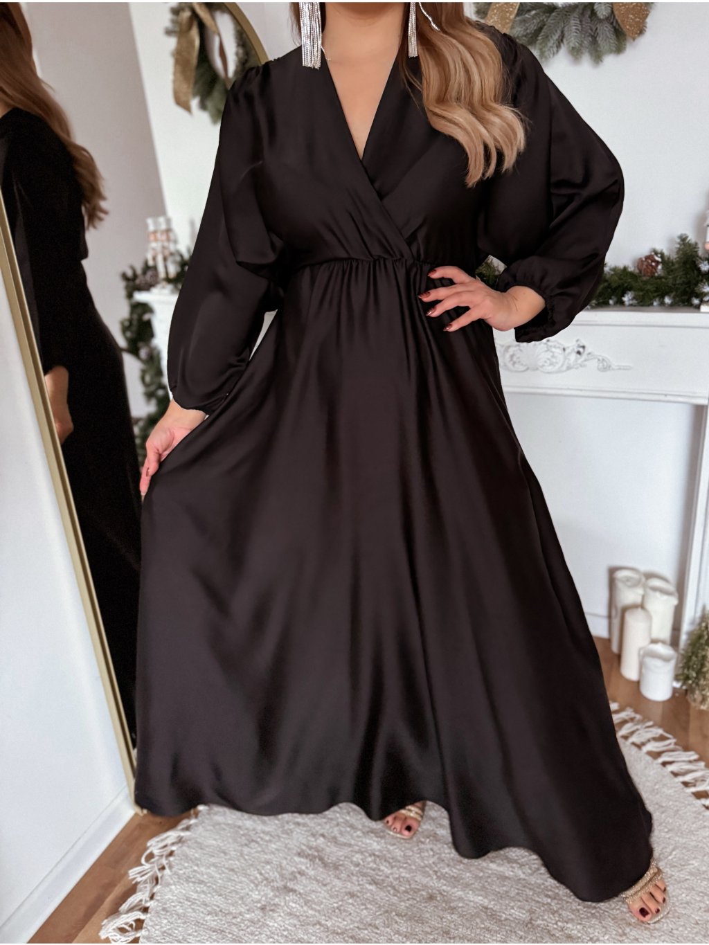 Szatén maxi ruha - fekete