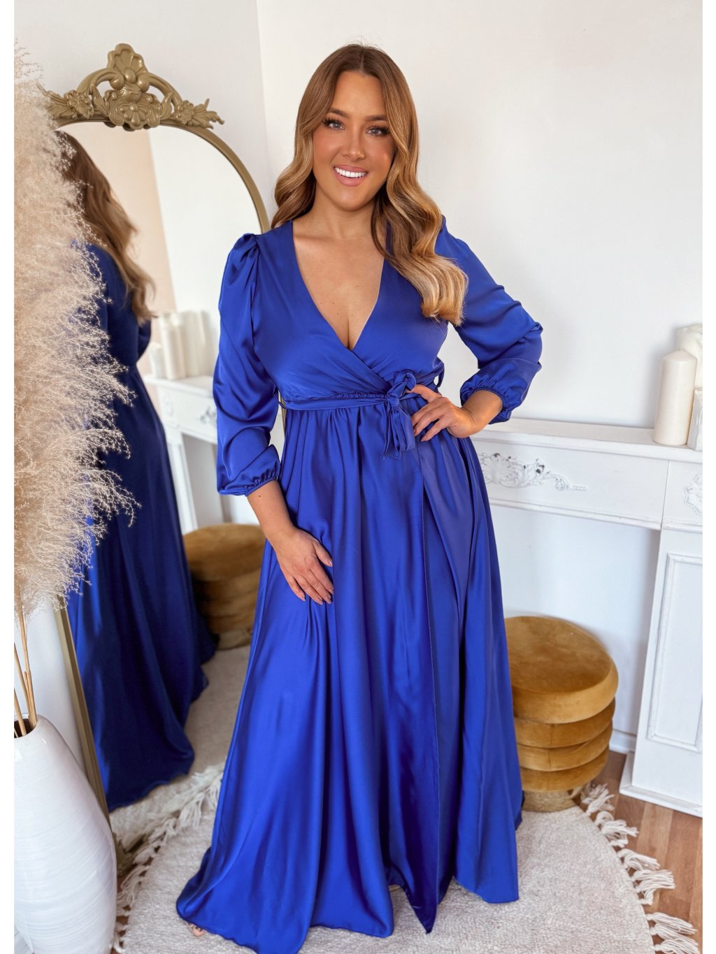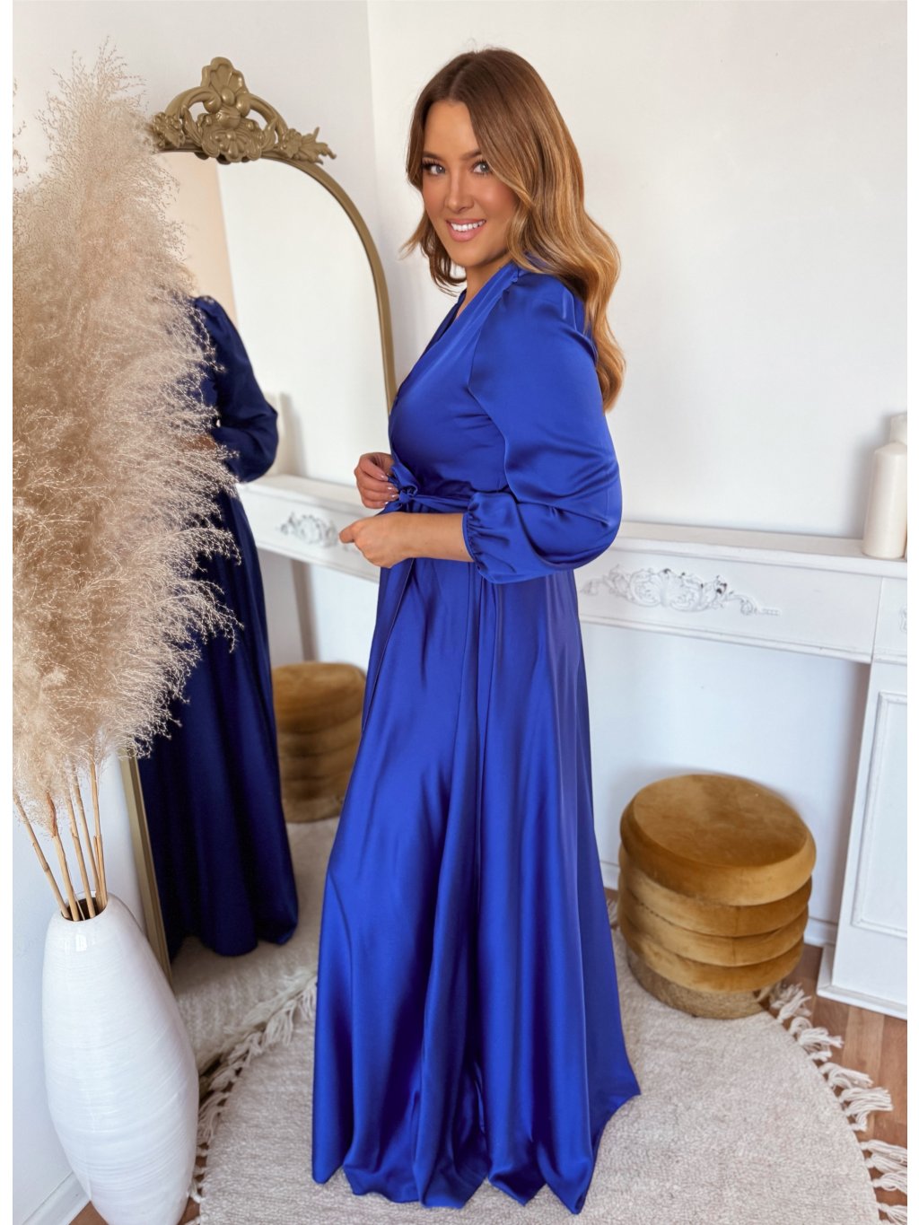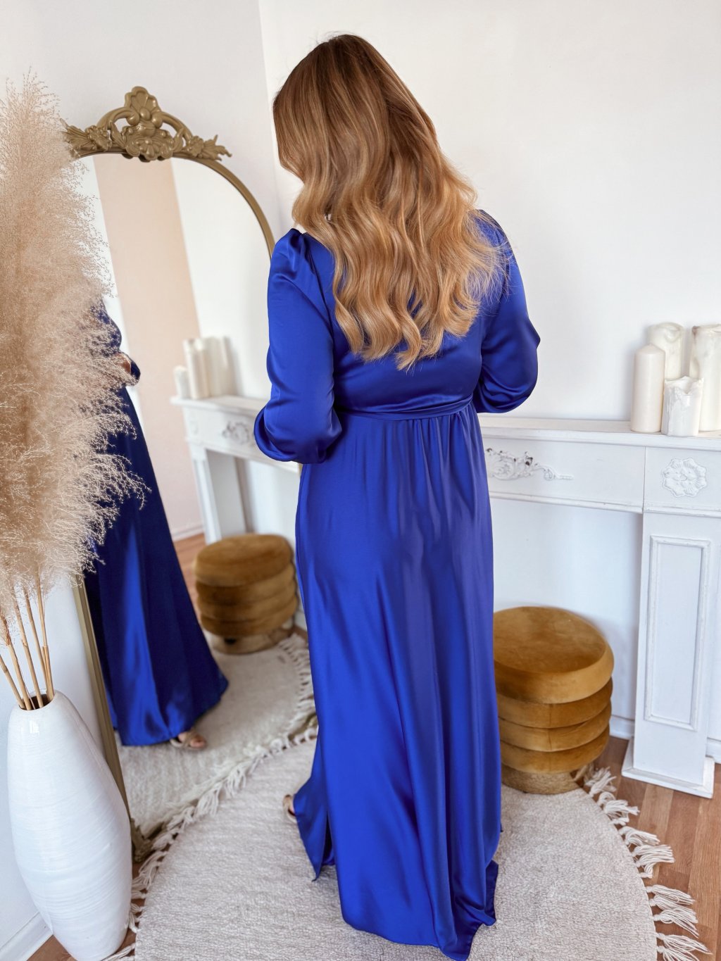 Szatén maxi ruha oldallal - királykék