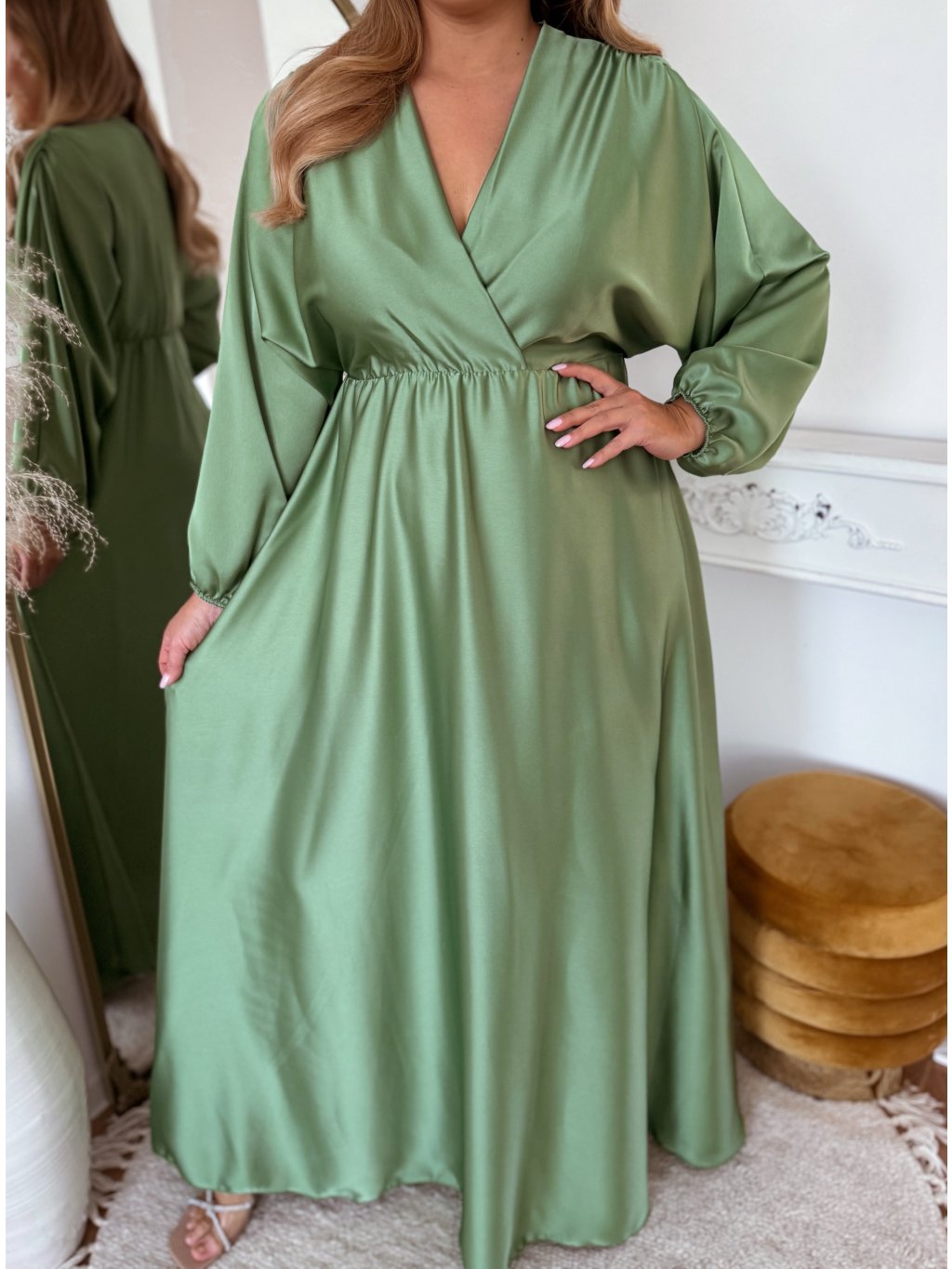 Szatin maxi ruha - világoszöld