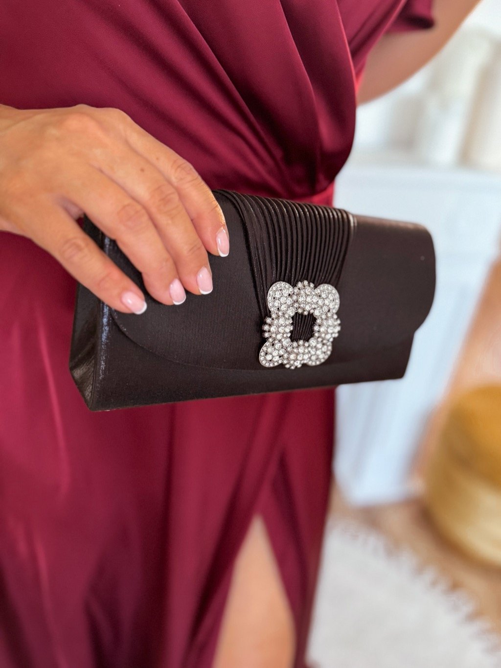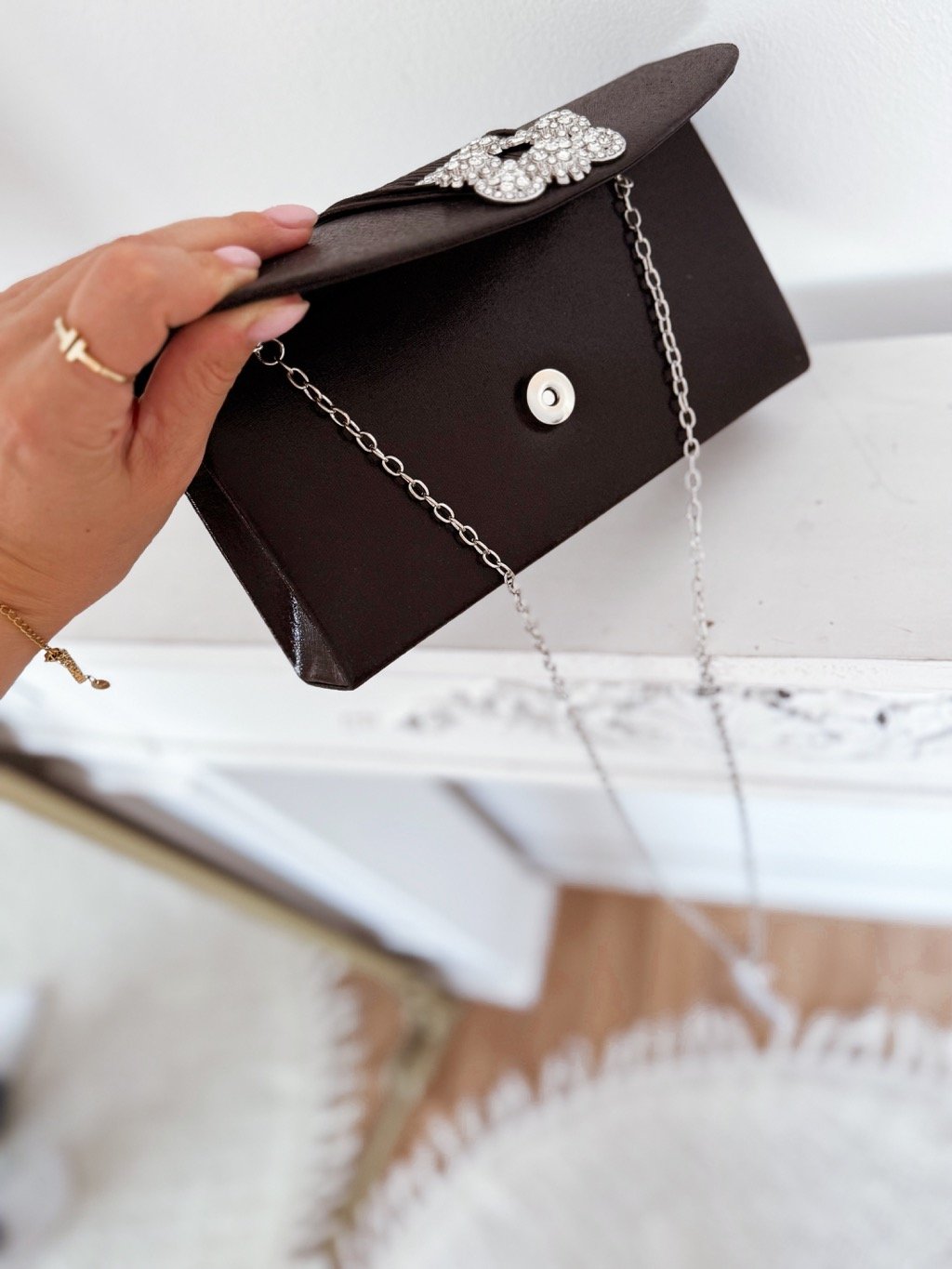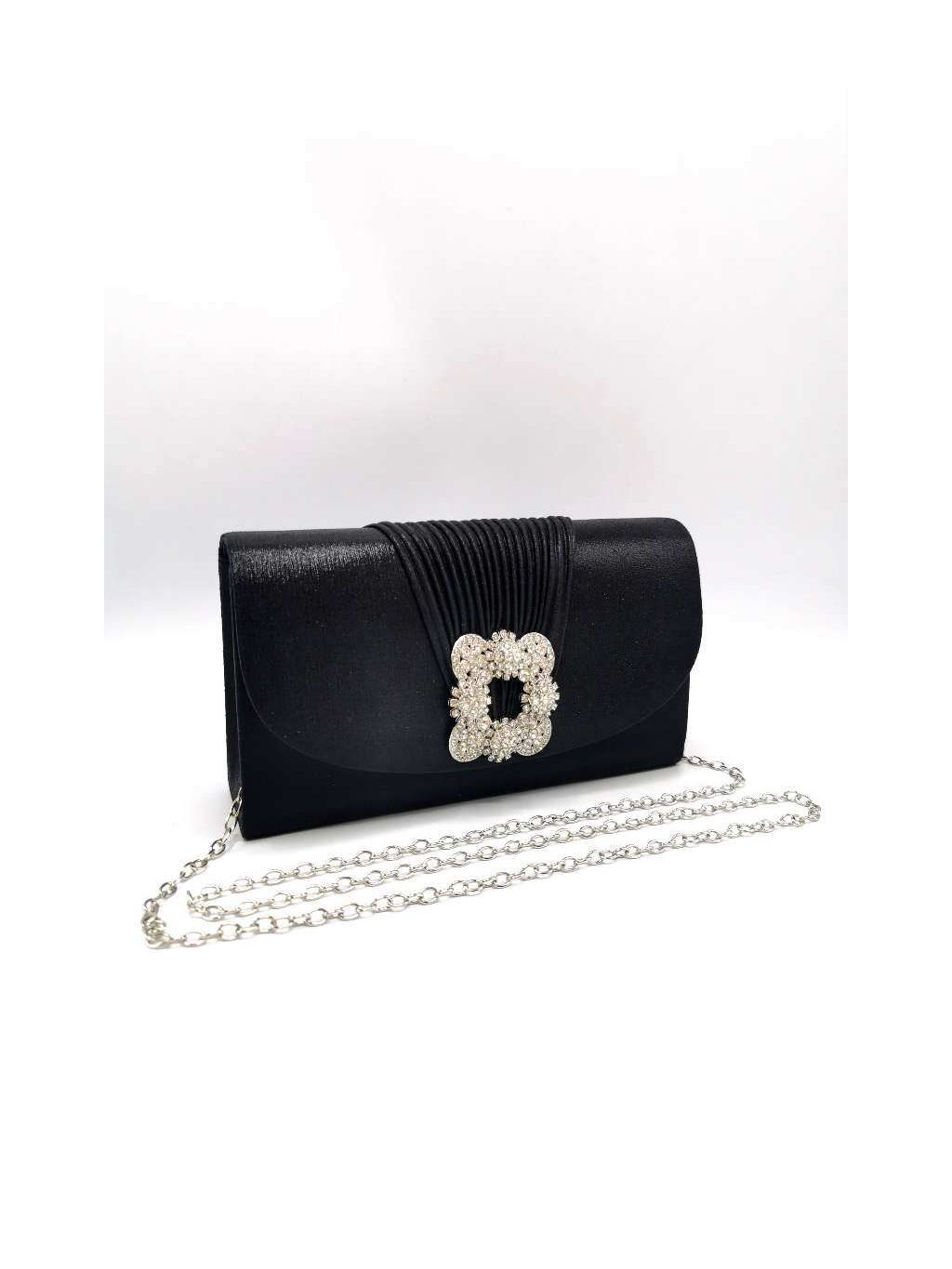 Fekete strassz csattal ellátott borítéktáska