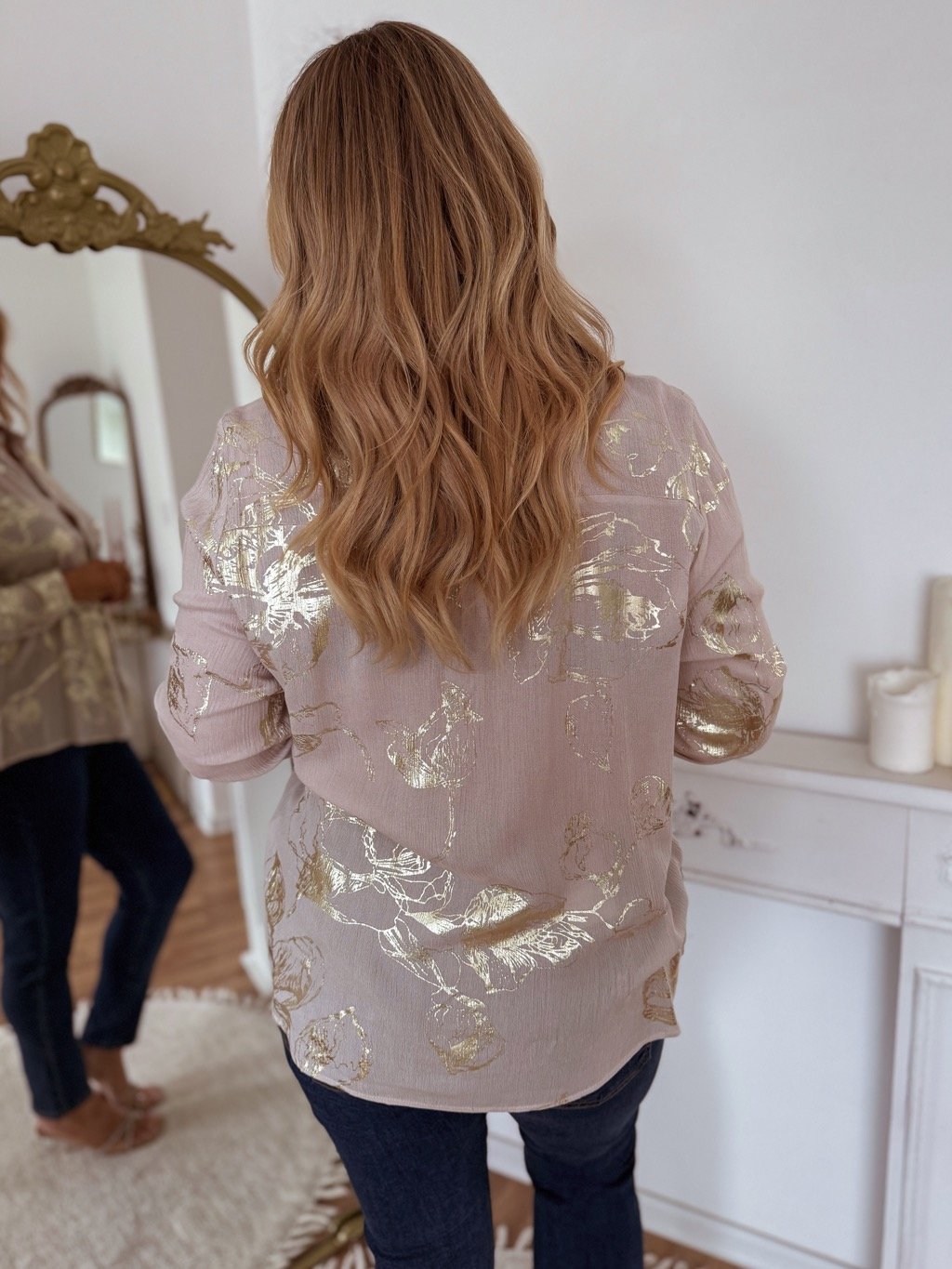 Krémszínű, arany virágmintás ing